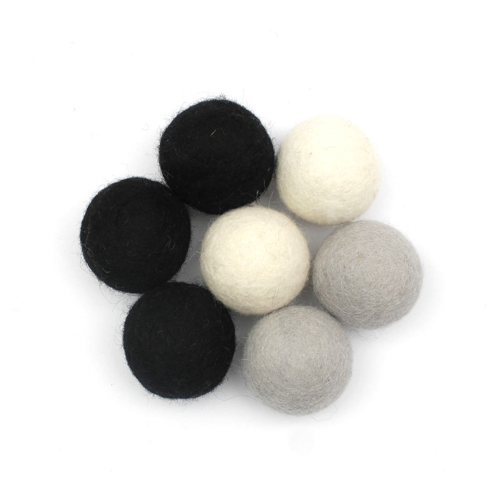 The Achromatic 5cm Felt Balls feature in white, black and grey, 7 pieces.