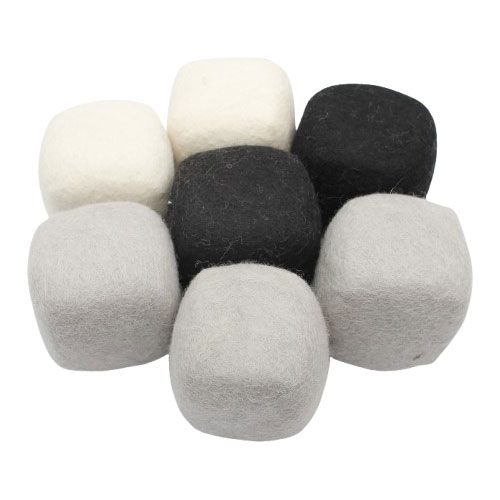 The Achromatic Cubes feature in white, black and grey, 7 pieces.