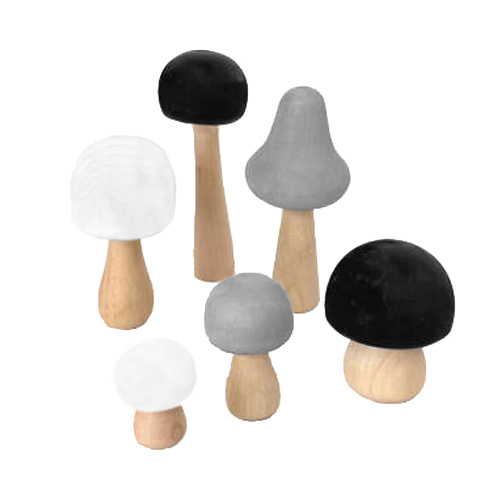 Product Description Wooden hand dyed achromatic mushrooms 6 Piece Set Size 4 -12 cm tall Hand painted in Melbourne, Australia 3+