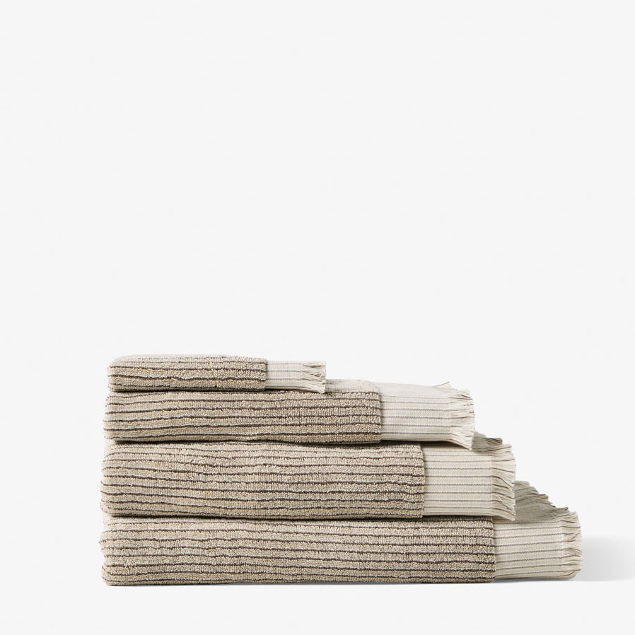 Alara is a striking striped design that injects pattern and yarn-dyed colour into your bathroom. Crafted from 580 GSM cotton terry with stylish fringing, this lightweight towel collection in pebble offers a refined neutral palette, a beautiful feel, quick-drying convenience, and high absorbency.