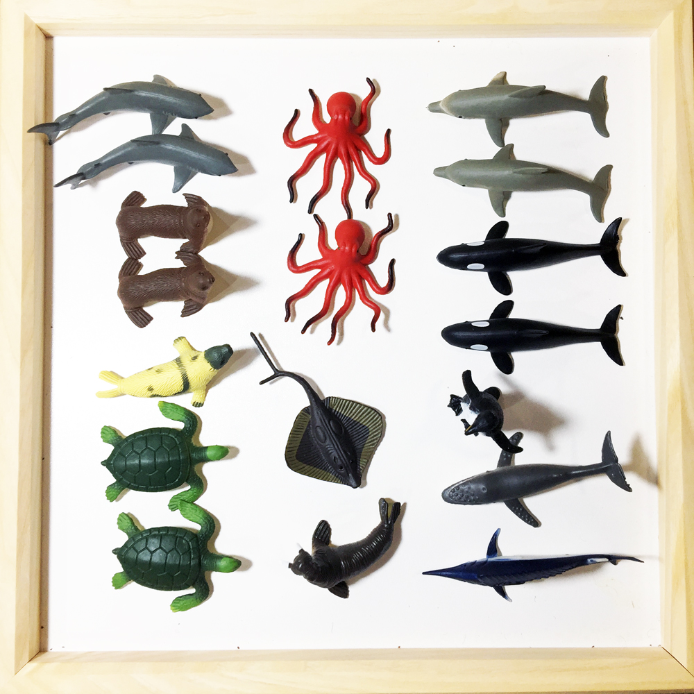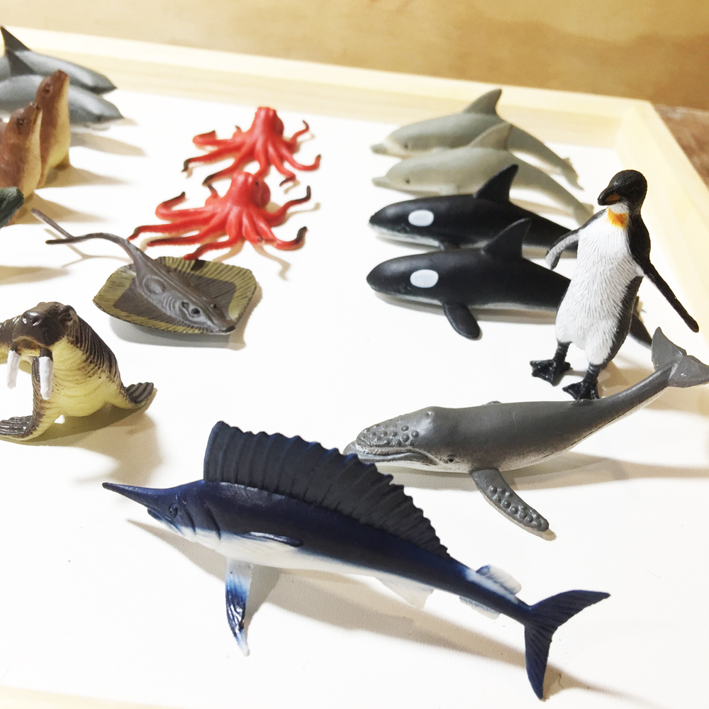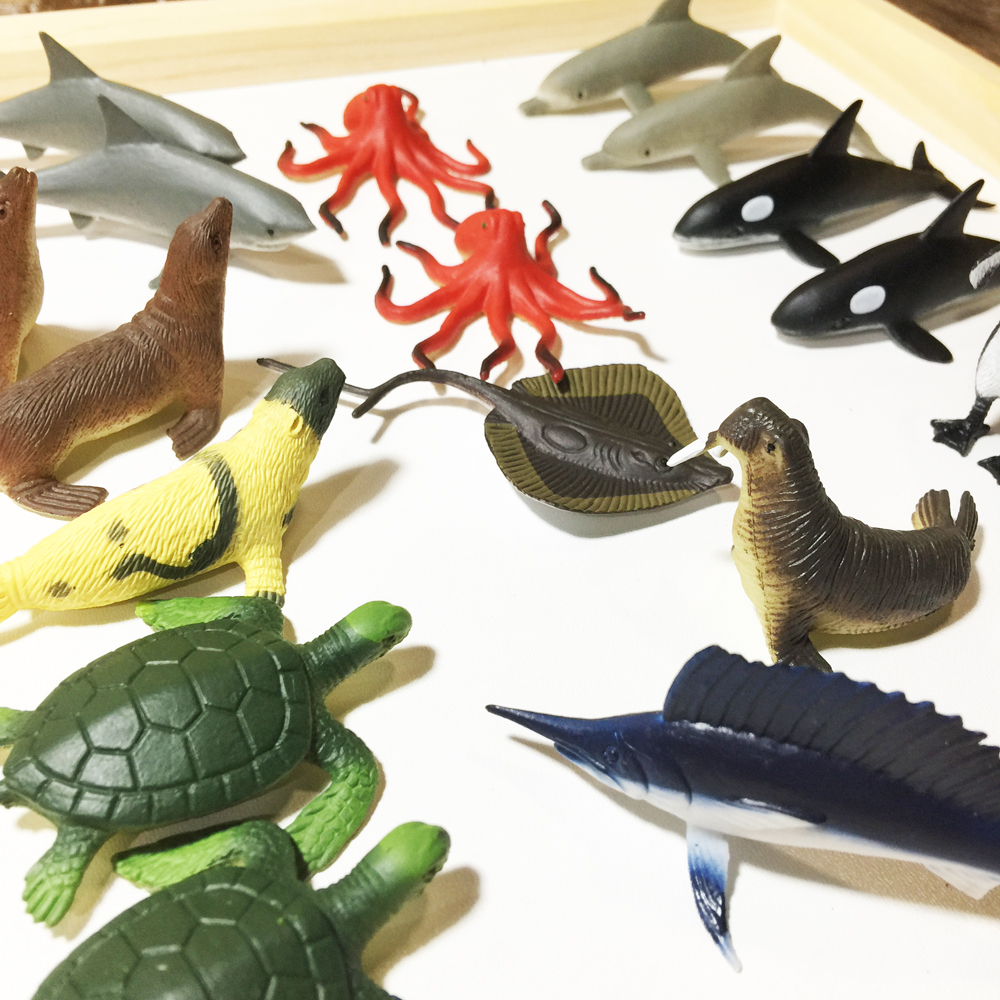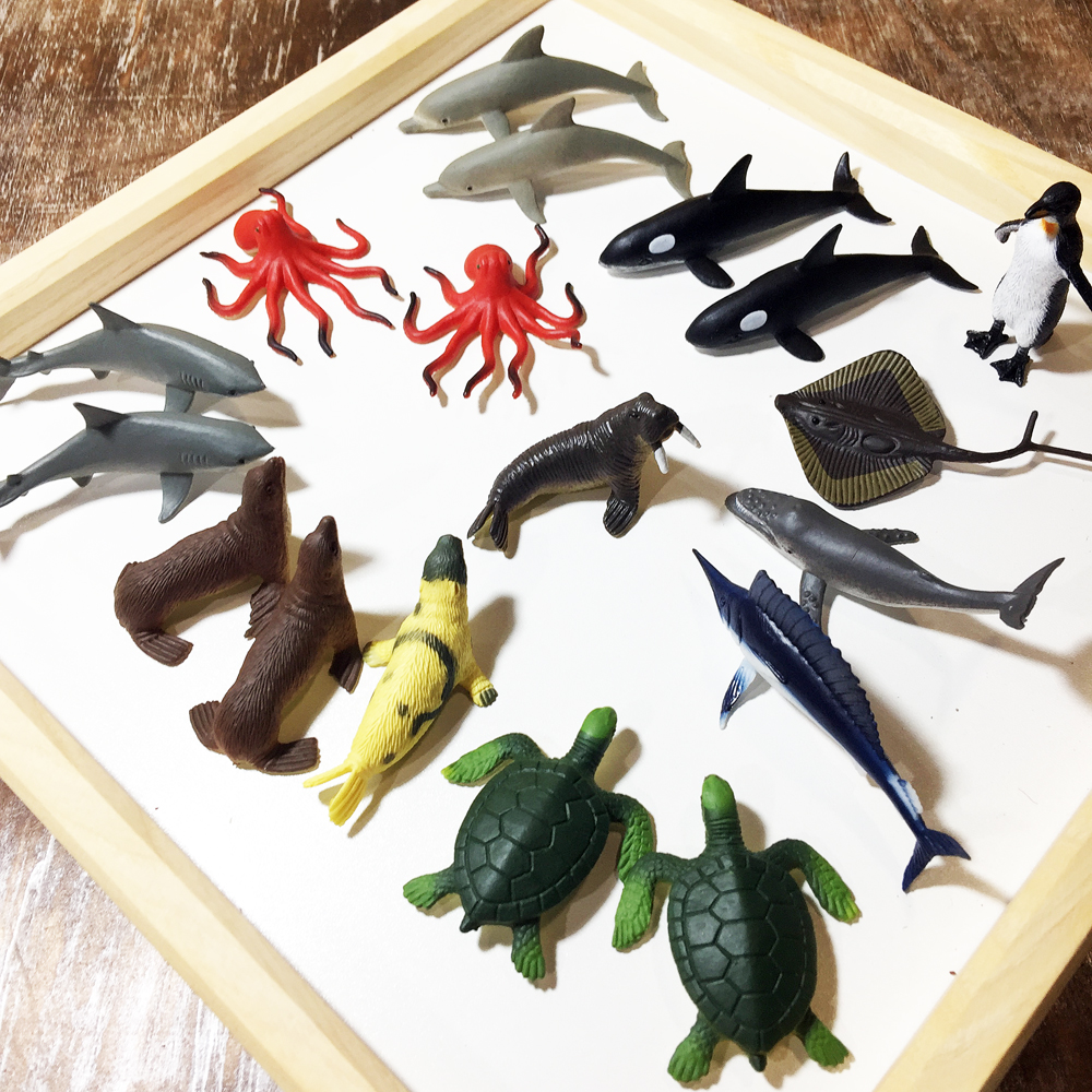 Contains: 2 x Sea Turtle, 2 x Great White Shark, 2 x Seal, 2 x Octopus, 2x Orca, 2 x Dolphin, 1 each Walrus, Sea Lion, Stingray, Humpback Whale, Penguin, Swordfish