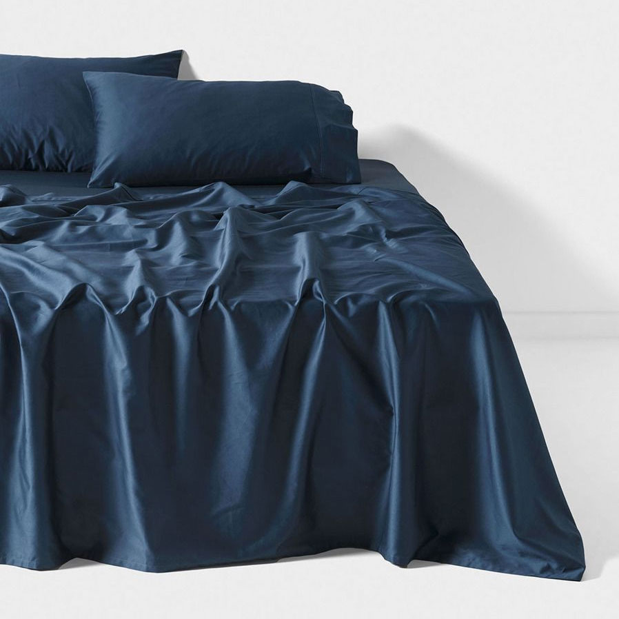 AUGUSTA Navy Cotton Sateen Sheet Set by Linen House