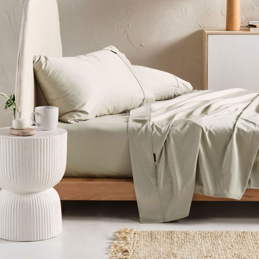 Made from luxurious cotton sateen, the Augusta sheet set in Taupe offers a silky 500 thread feel and a warm, earthy tone that suits any bedroom palette. The flat sheet and pillowcases feature a cuffed and piped header for a refined finish, while the fitted sheet includes a generous 50 cm wall to fit comfortably over deeper mattresses.