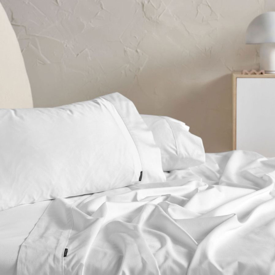 Crafted from high‑quality cotton sateen, the Augusta sheet set in White offers a silky 500 thread feel and a crisp, fresh aesthetic. The flat sheet and pillowcases feature a cuffed and piped header for a clean, tailored finish. The fitted sheet includes a generous 50 cm wall, making it suitable for all mattress depths. White is the perfect foundation colour, pairing effortlessly with every Linen House design.