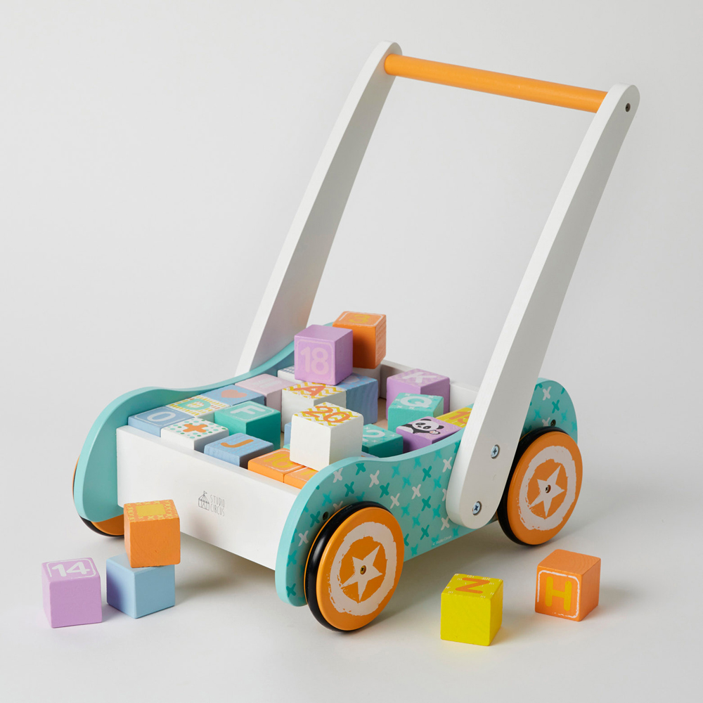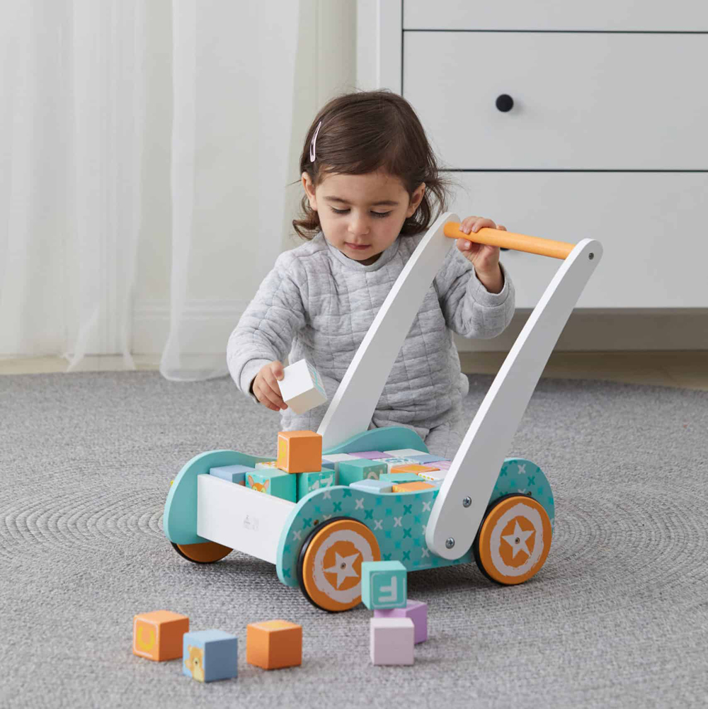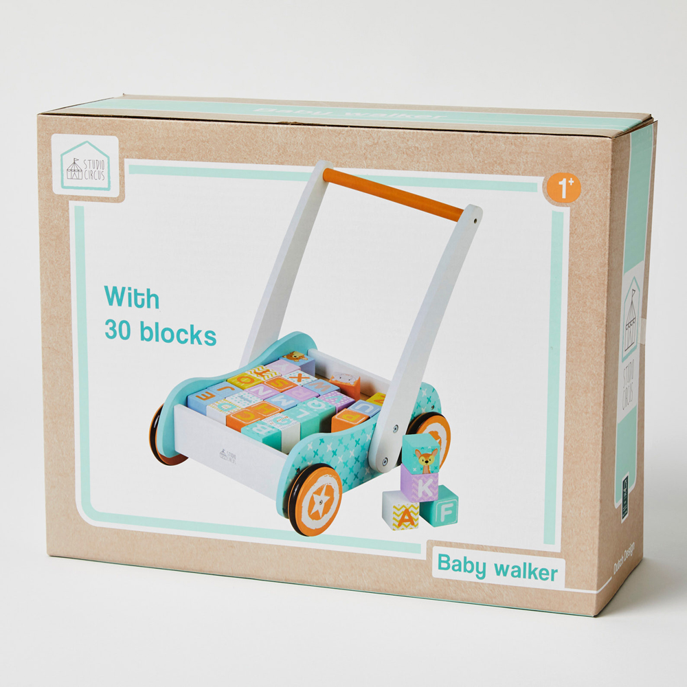 This Baby Walker is a stunning, multi-functional walker complete with 30 brightly coloured, wooden alphabet and numerical blocks. By encouraging toddlers to get moving and learn how to walk, this Baby Walker is extremely beneficial for cognitive development, fine motor skills and hand eye coordination.