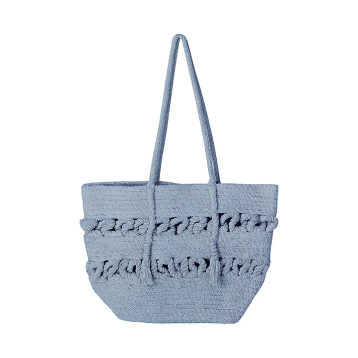 Moby in Blue is a beautiful, and generously-sized tote bag that has been woven together using layers of cord. Made from a strong, durable cotton, this nautical-inspired bag will fit all of your essentials when heading out for a day at the beach, pool or even the markets. 50x35cm