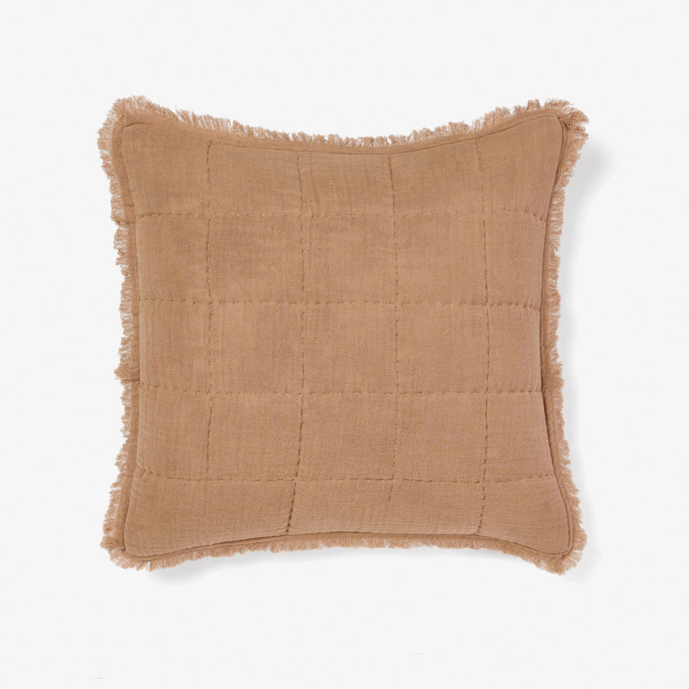 Bellbrae in Clay brings earthy warmth and versatility to your interiors. Crafted from quilted cotton muslin with a 150 GSM polyester fill, this cushion is delightfully lightweight and soft. Frayed edges add a relaxed, chic detail that makes it easy to style across your home.