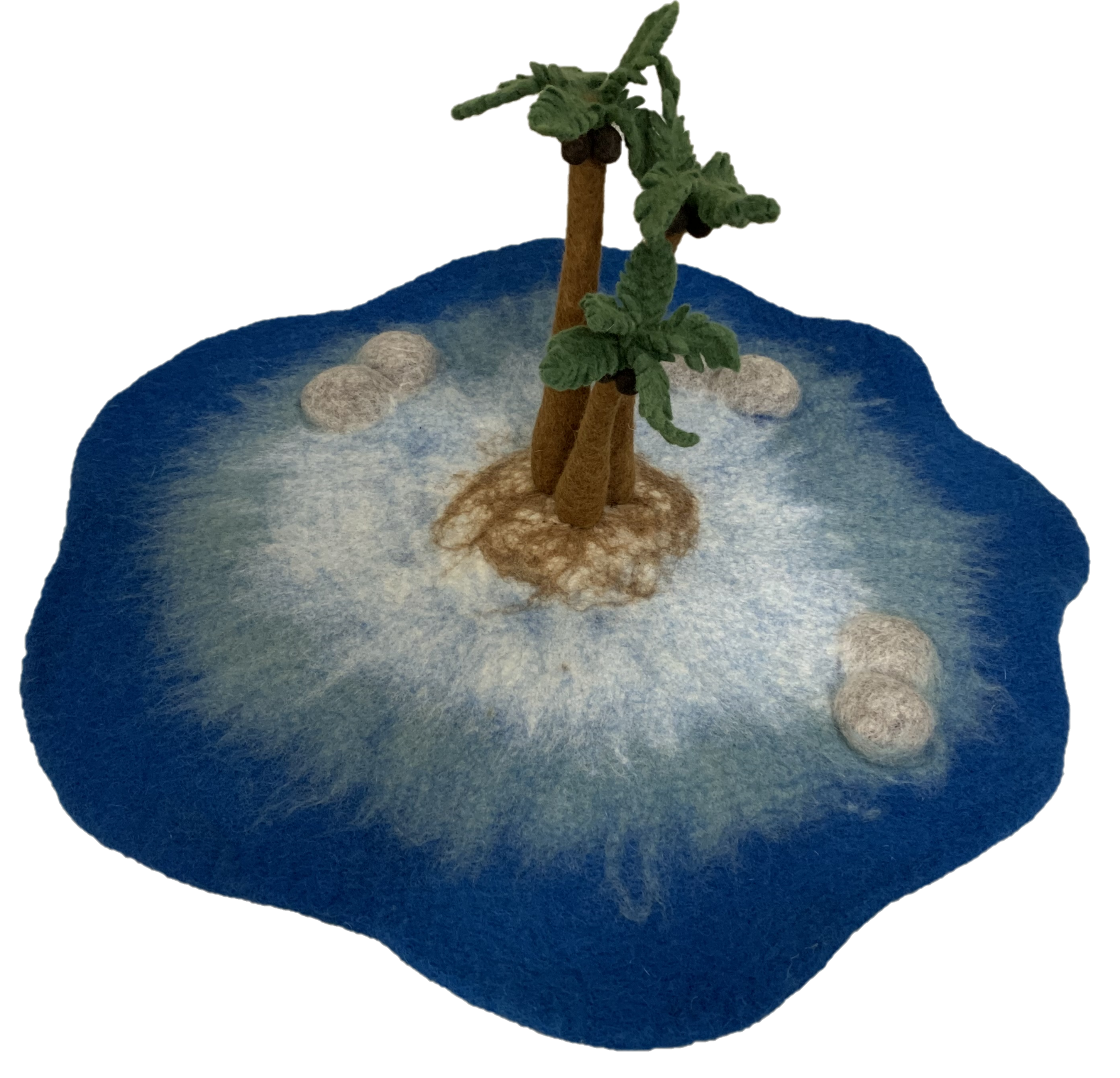 The gorgeous palm trees stand about 27cm high and the mat is a generous size approximatley 67x64cm allowing plenty of space to add sea and beach critters, shells, driftwood etc.