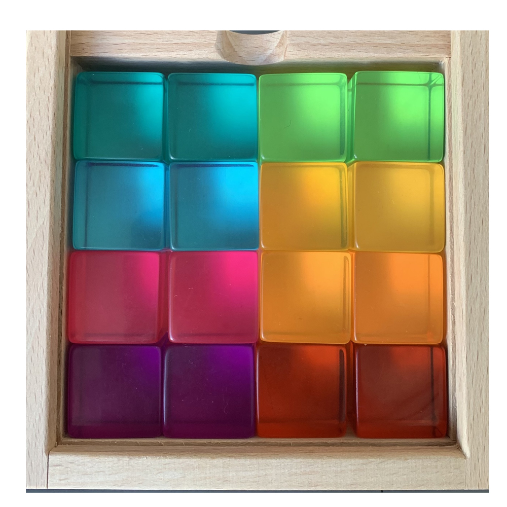 A vibrant invitation to explore colour, light, and pattern, this set of 16 Lucite Cubes is perfect for sensory play, construction, and early STEM discovery. Each cube is precision-cut and polished to reveal rich, translucent colour—ideal for light panels, sorting, stacking, or simply admiring.