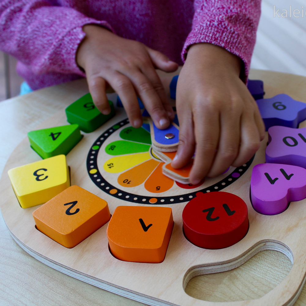 Practice sorting and number sequencing with this educational clock puzzle. This is a great tool to learn the time with moveable hands and lots of bright colours to introduce the concept of time.