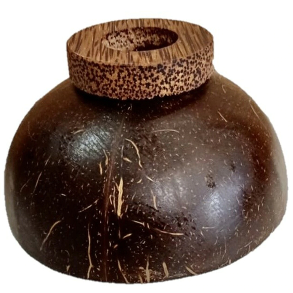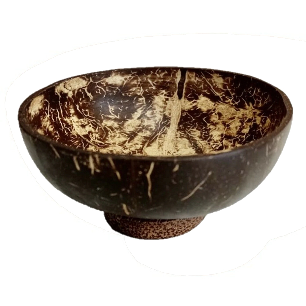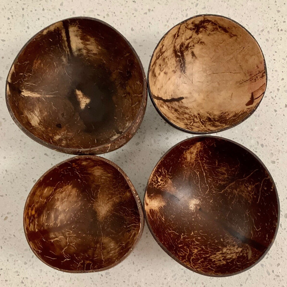 This set of 4 coconut bowls are a natural product made from coconuts with a base added to allow the bowls to stand well.
