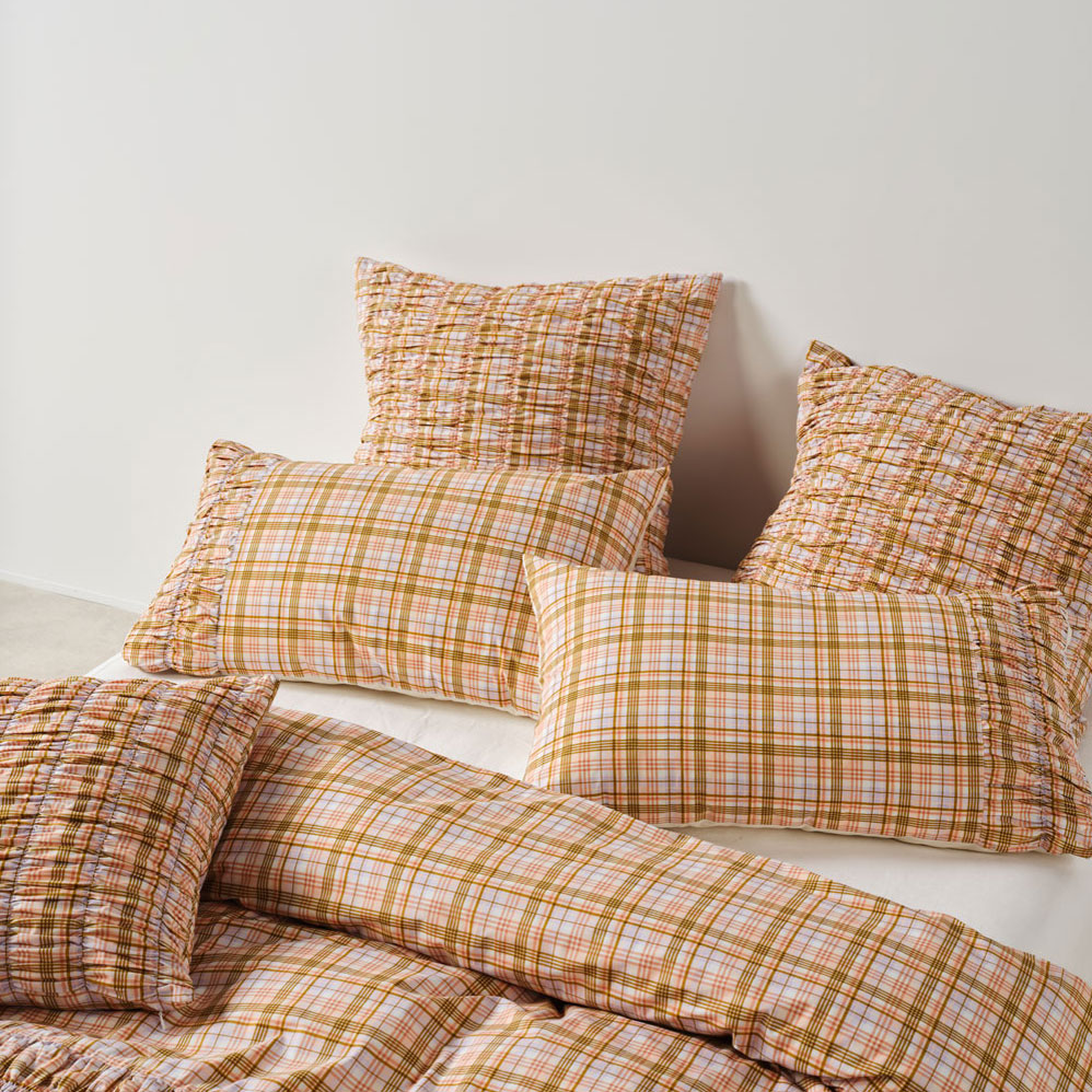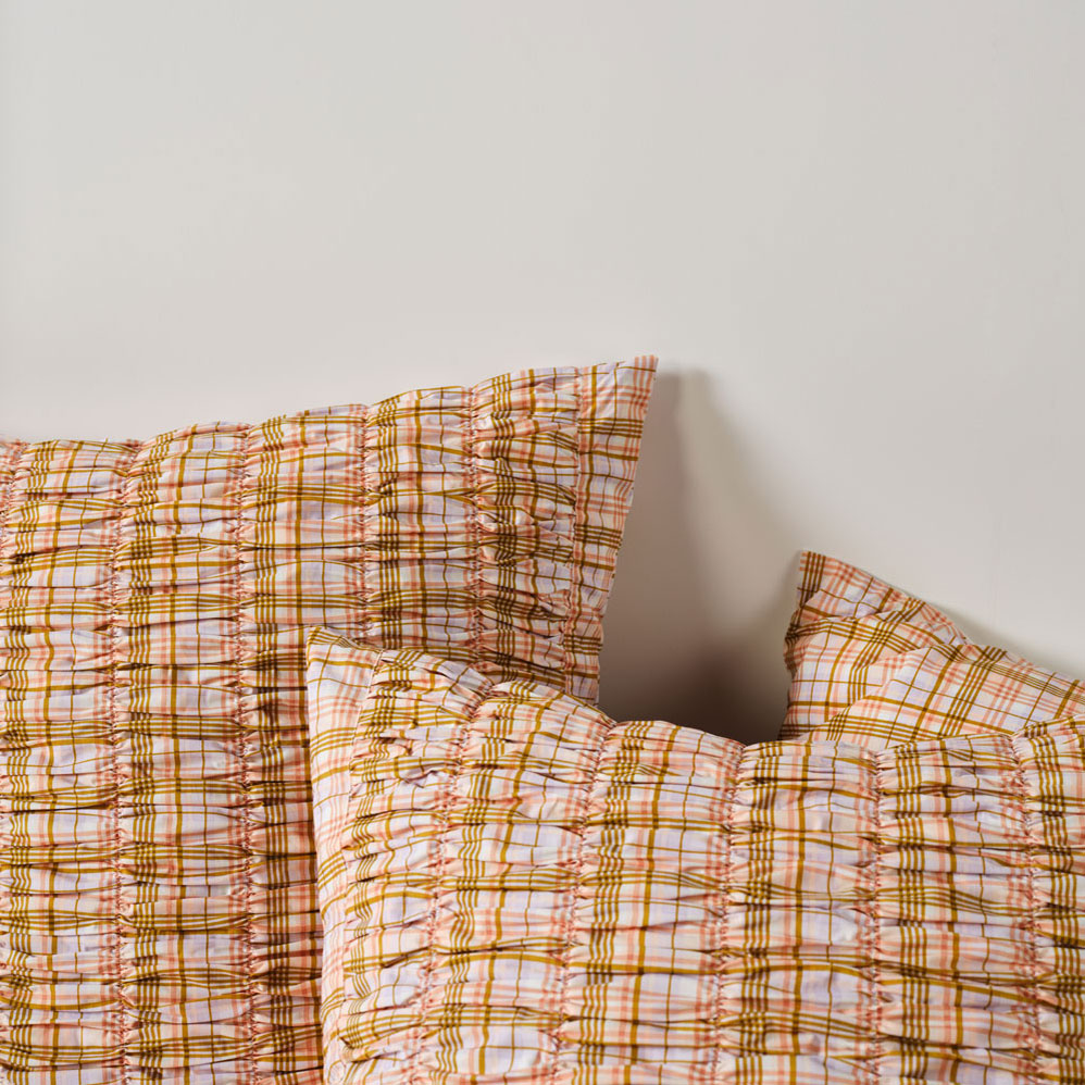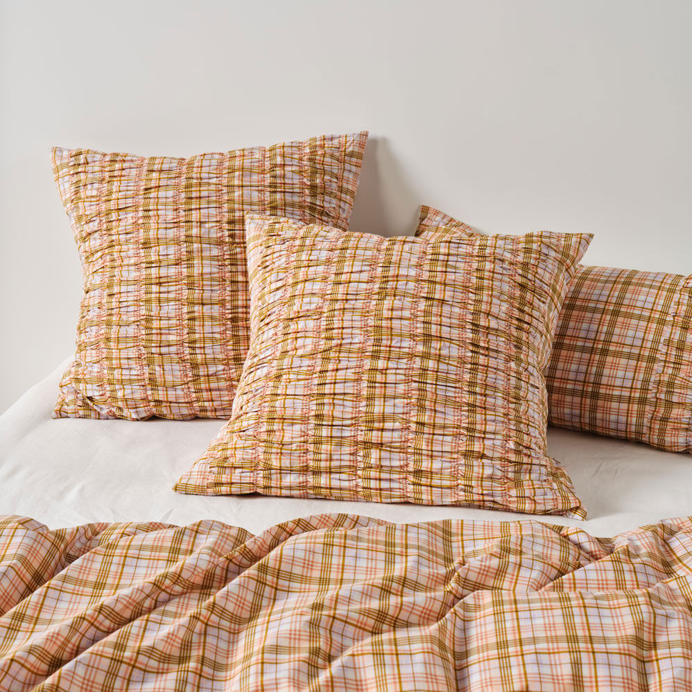 Complete your Darcy quilt cover set with the matching European pillowcase. Crafted from breathable cotton percale, it features the same contemporary check and all‑over textured ruching for a refined finish. The generous European size adds depth and balance to your bedding ensemble.