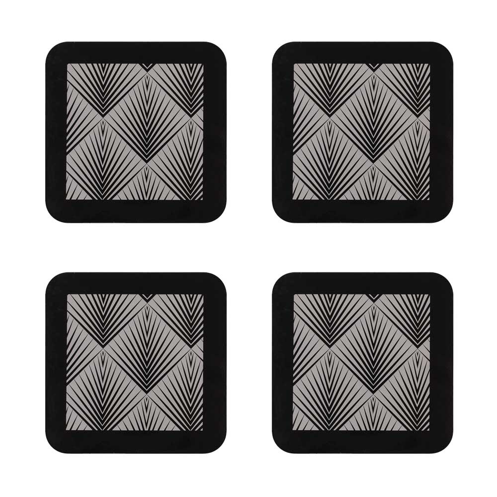 Aisha 4pk coasters feature black coloured edges and a unique heat resistant coating with a matte finish. The range can withstand heat of up to 120 degrees Celsius.