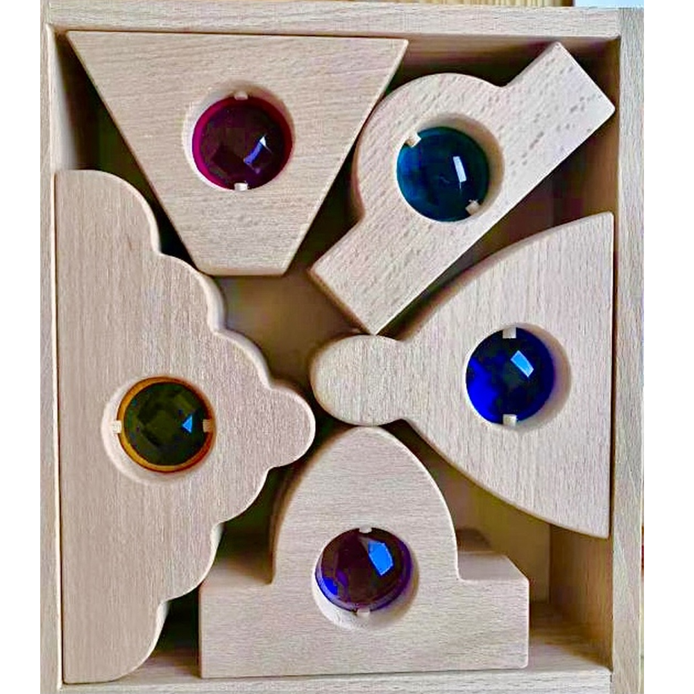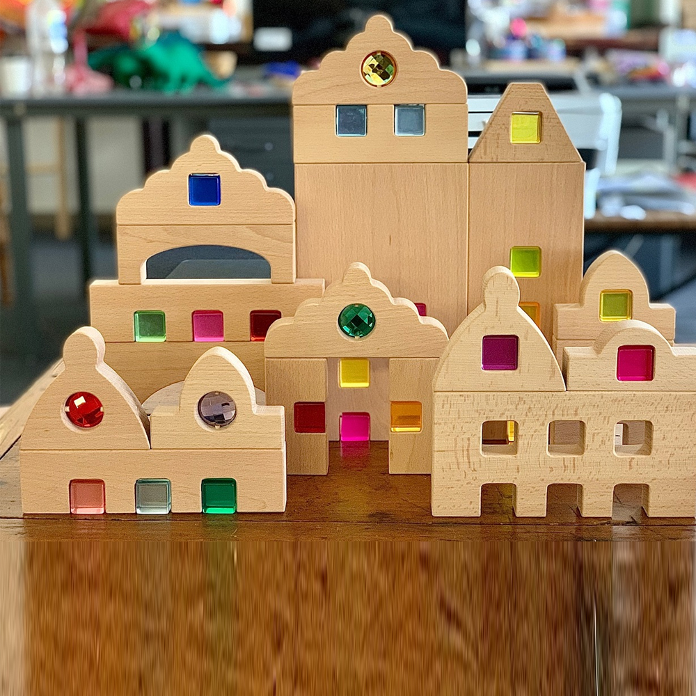 This set works well with all Papoose Toys building and gem blocks as well as the Bauspiel blocks.