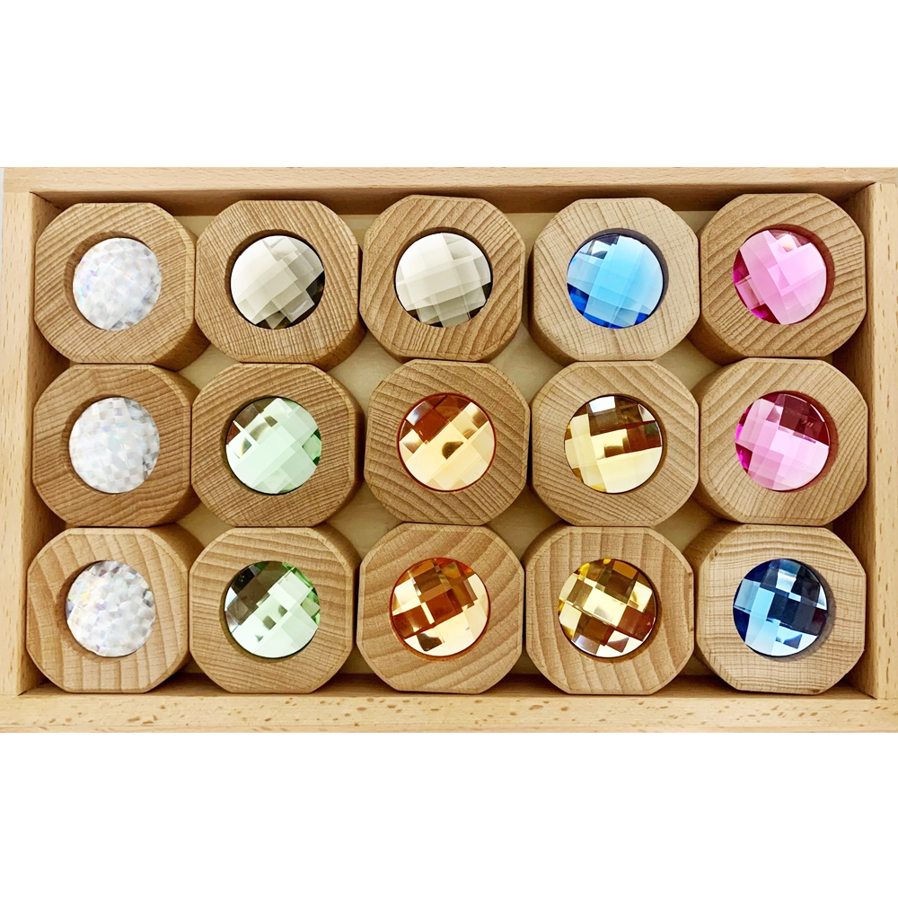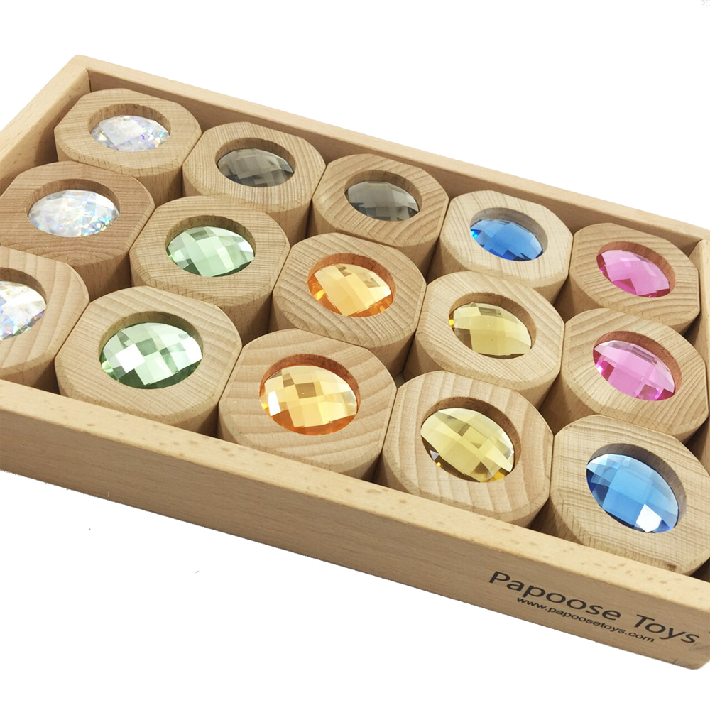 Each block is 5x5x2.5cm and fit perfectly with the Bauspiel Colour Street blocks, Lucite Cubes and the full range of Papoose Gem Blocks.