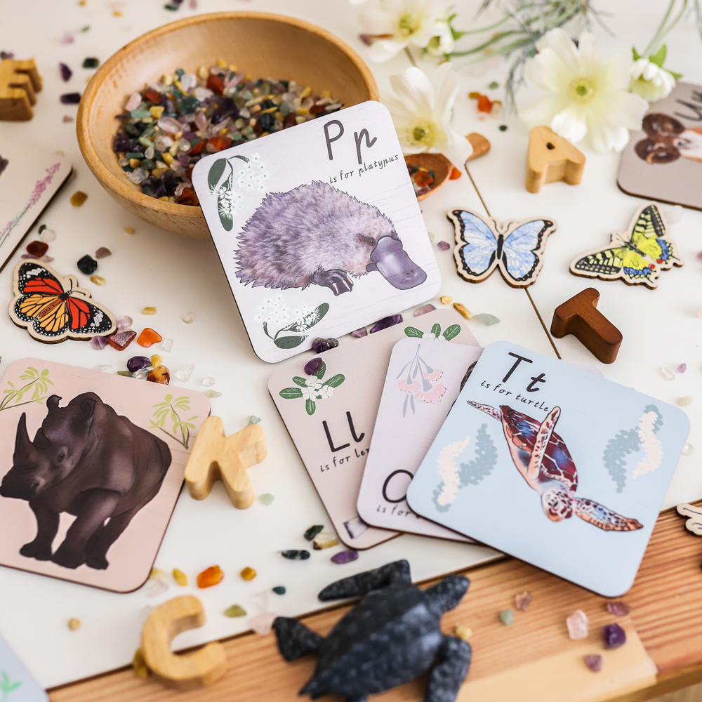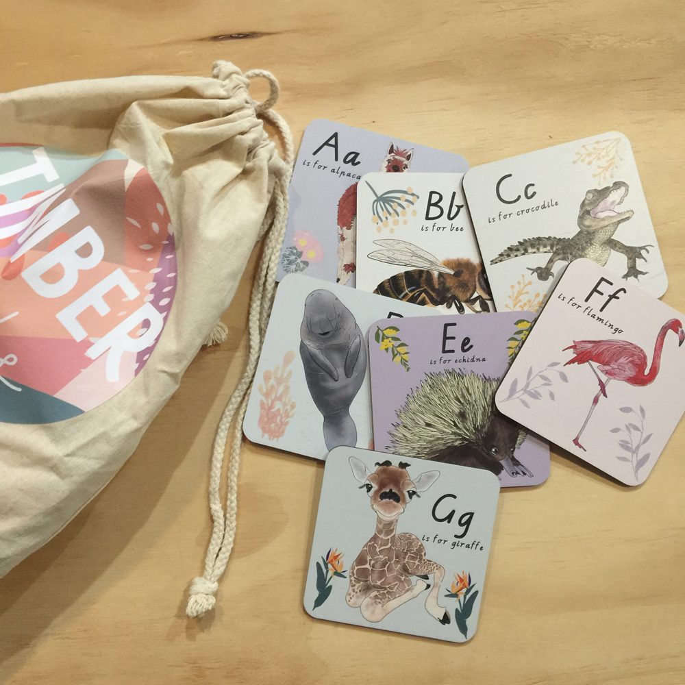 Your little one will have fun learning their ABC's with these beautifully illustrated timber tiles.