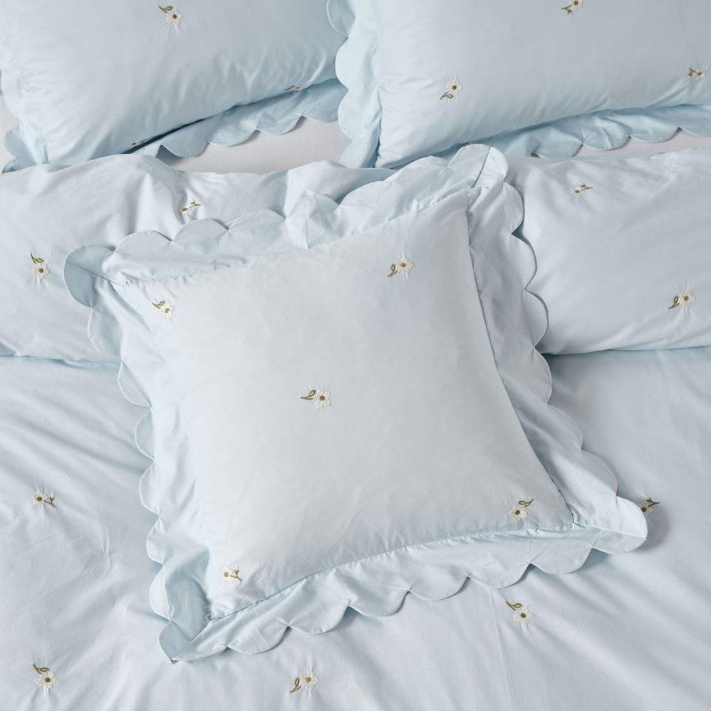 Elevate your Eva quilt cover set with the coordinating cushion. Showcasing the same romantic floral embroidery, this accent piece adds texture and dimension to your bedding. Finished with scalloped edges, it pairs beautifully with the quilt cover set and European pillowcases for a polished, cohesive look.