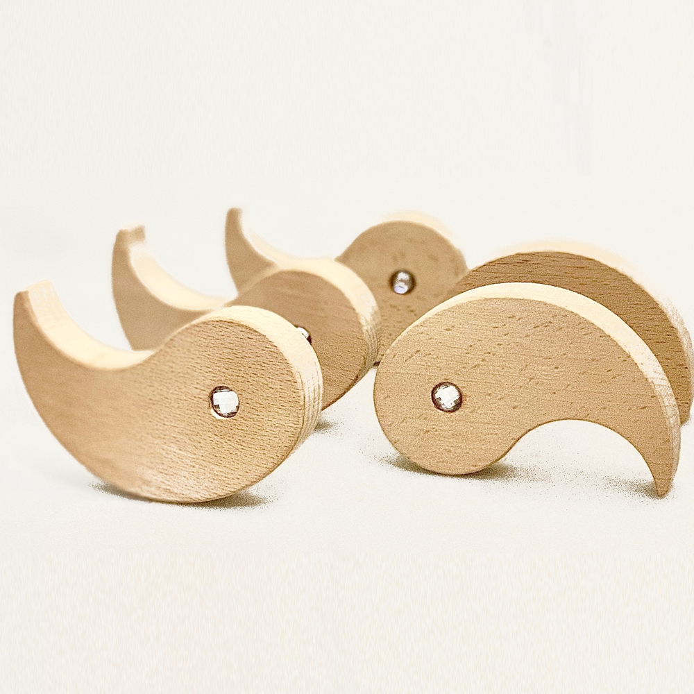 Is it a bird or is it a fish? The sparkly eyes make this shape come alive. There are 8 pieces in a set and are made from beech.