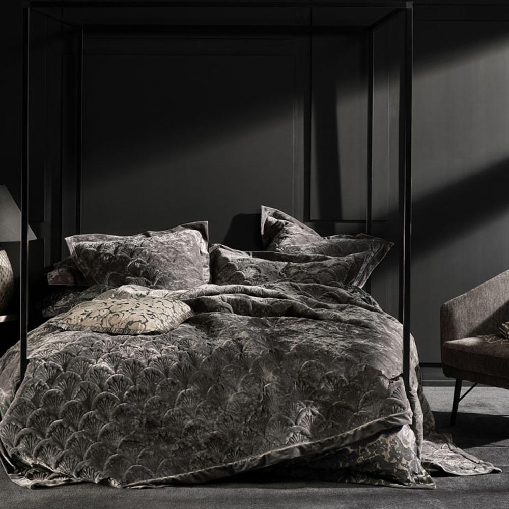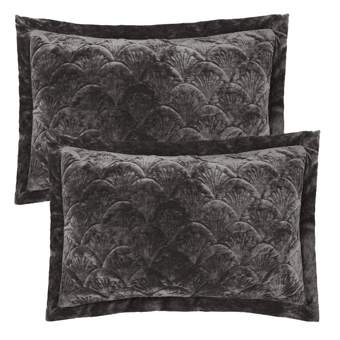A beautiful rich, velvet bed cover in charcoal featuring an alluring scalloped design throughout and tailored edge.