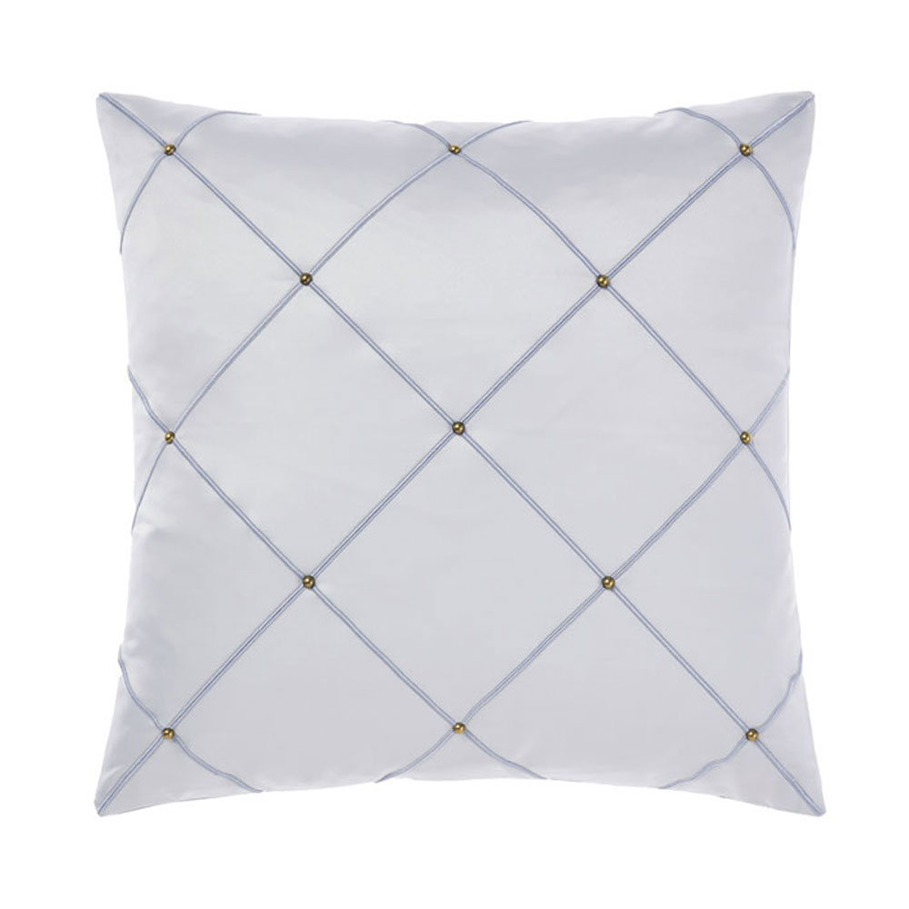 Made from a soft, satin-like fabric in a diamond-shaped embroidered pattern featuring metal nail heads at each cross-over.