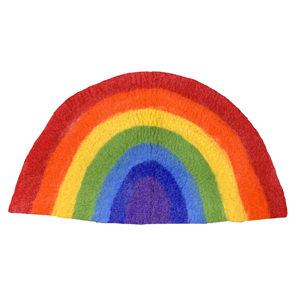 Brighten any play space with the Papoose Toys Rainbow Half Moon Mat. Hand felted from natural wool, this 90x45cm semi‑circle mat features seven coloured arches that create a warm, tactile base for small world play, colour matching, and loose‑parts setups. Perfect in front of a bed, under shelves, or as a vibrant play invitation, and designed to coordinate with all Papoose Rainbow pieces.