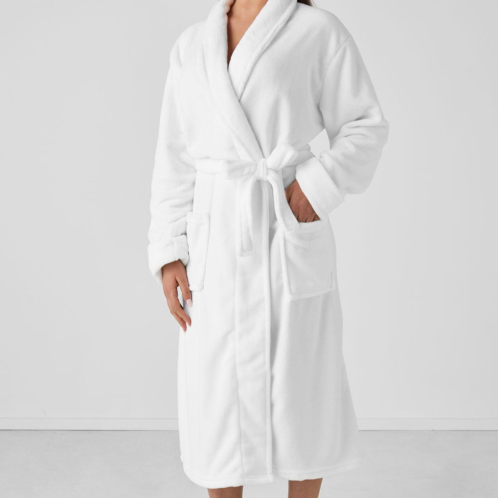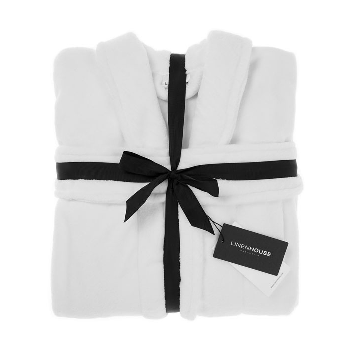 Product Description Made from a luxuriously soft and absorbent fabric for supreme comfort, this easy-care, peel-free Plush robe in white comes in one size that fits most. Comes with a belt and hand pockets. Length of robe is 122cm Other Details Item: Bath Robe Size: One size fits most