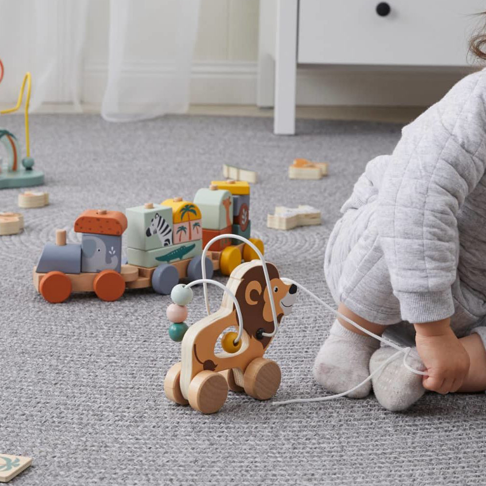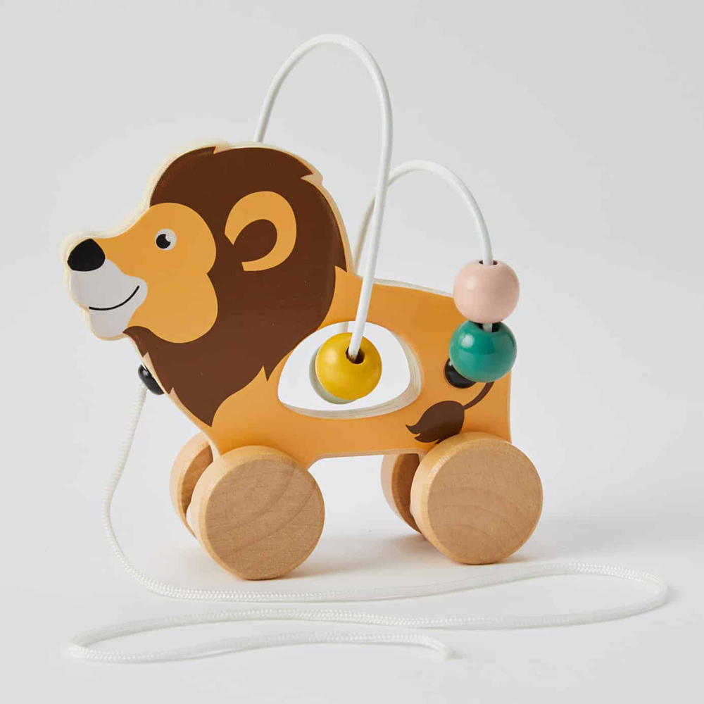 This wooden bead coaster featuring a cute lion with a pull along string is a great activity to encourage crawling and walking, hand-eye coordination and imagination skills. The movement helps develop their co-ordination, balance and gross motor skills. Infants who are strengthening their fine motor skills will benefit from grasping toys while wheeling them around.