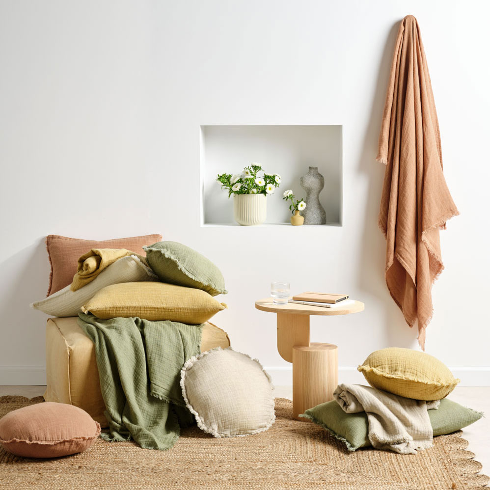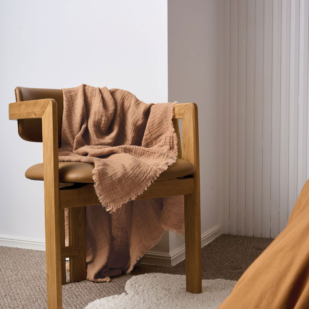 Wrap your home in warmth with the Maya Throw in Nutmeg by Linen House. Crafted from a delightfully soft linen/cotton blend with frayed edges, this lightweight throw adds a relaxed, earthy tone to any space. Style with coordinating Maya cushions for a rich, layered look.