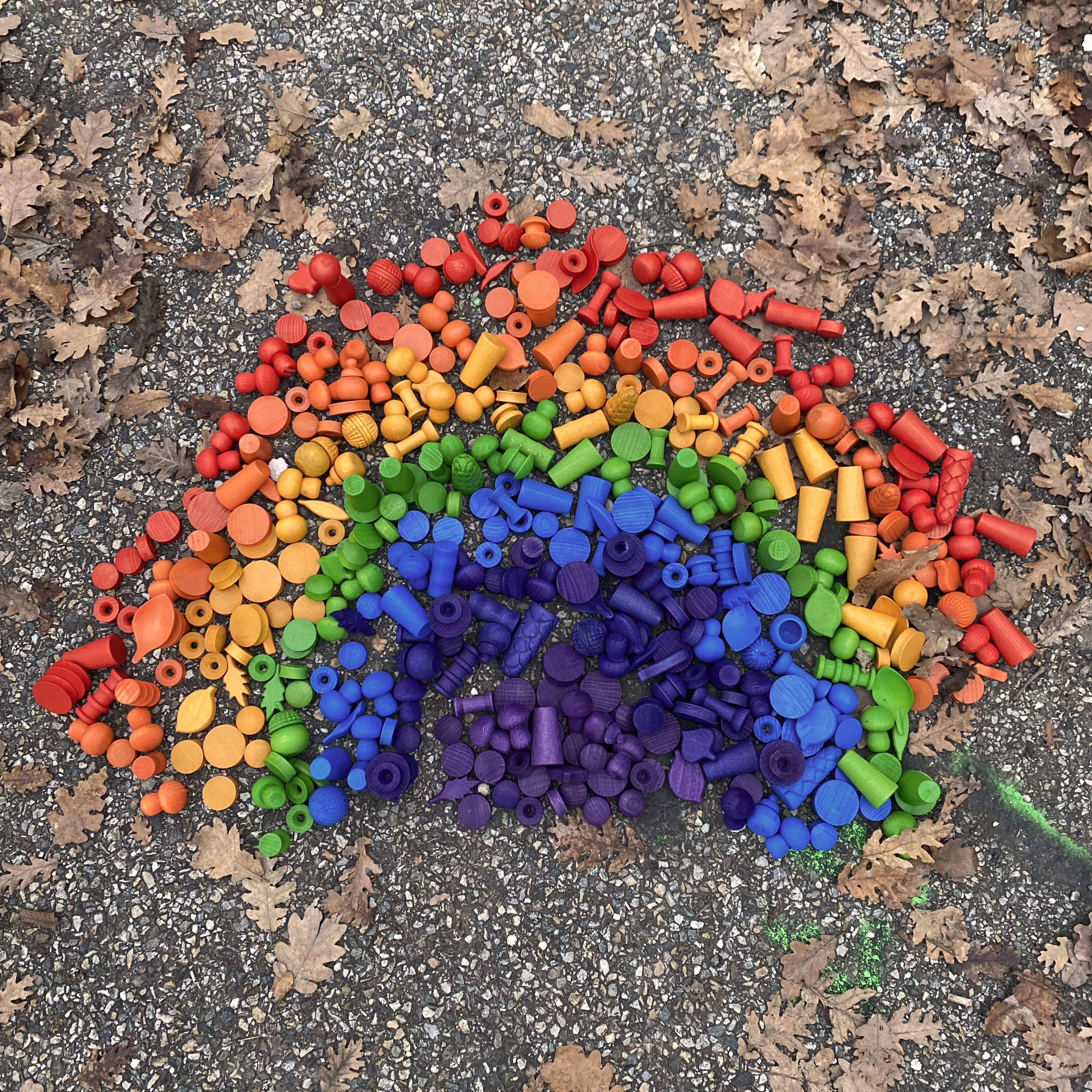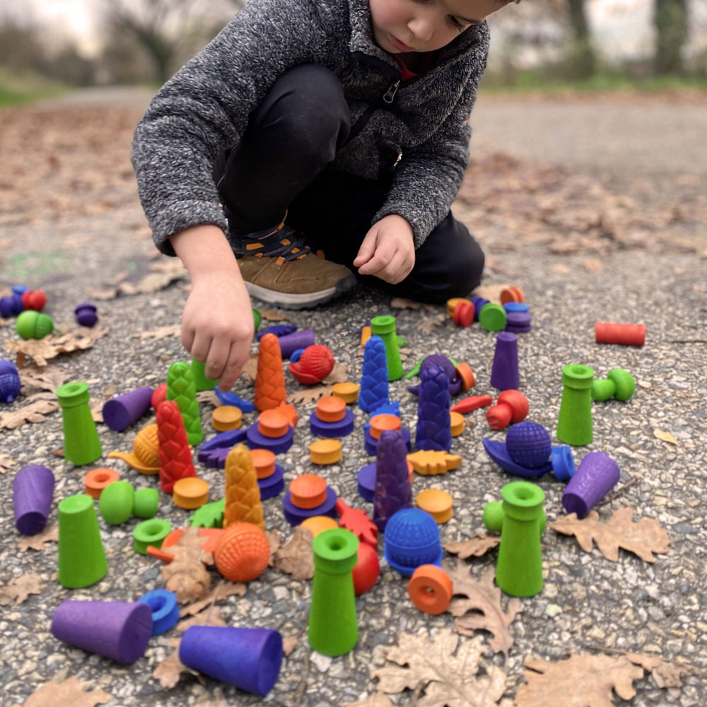 The large set is great for sorting by colour/shape/size, creating mandalas, building structures or simply allowing children to follow their imagination and allow the play to go in any direction their creativity takes them.