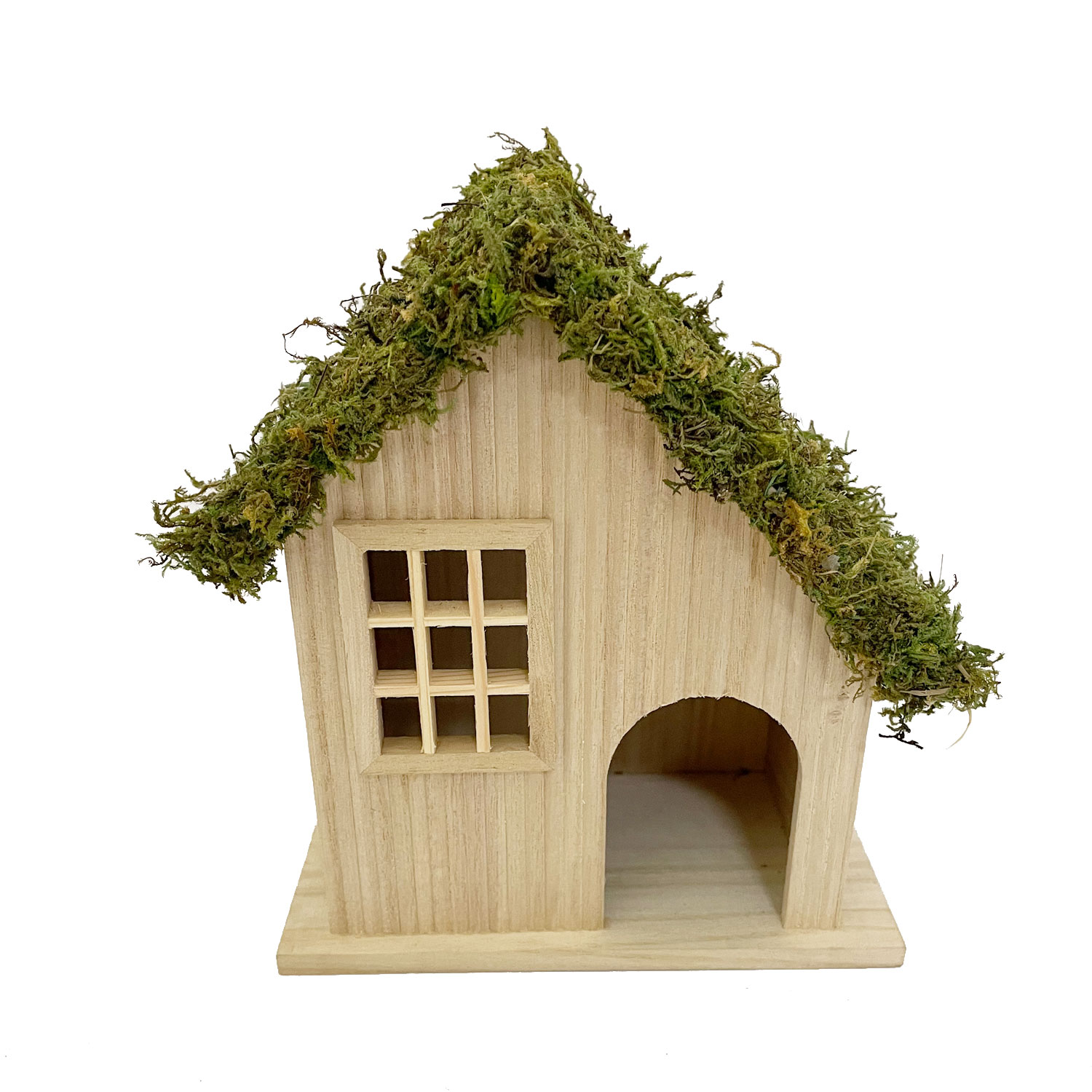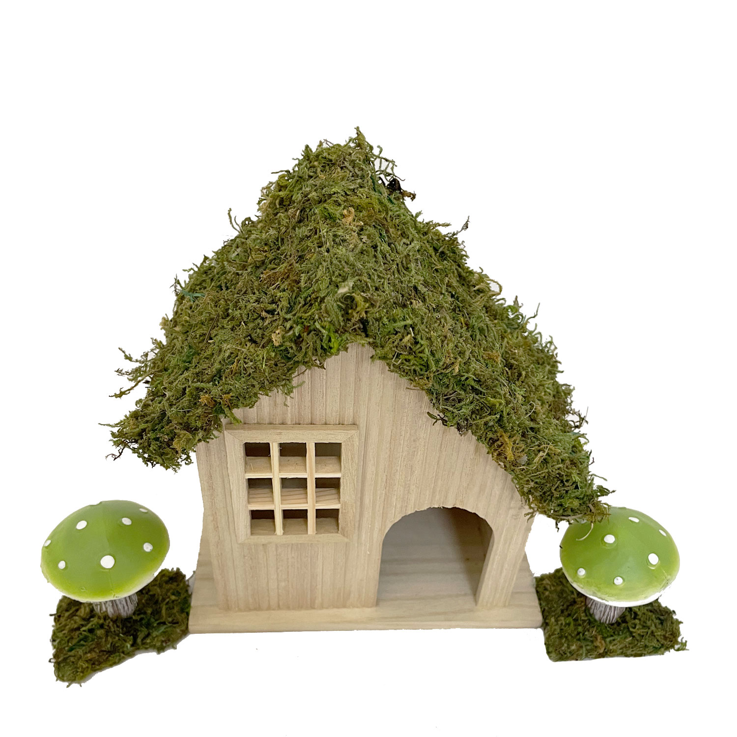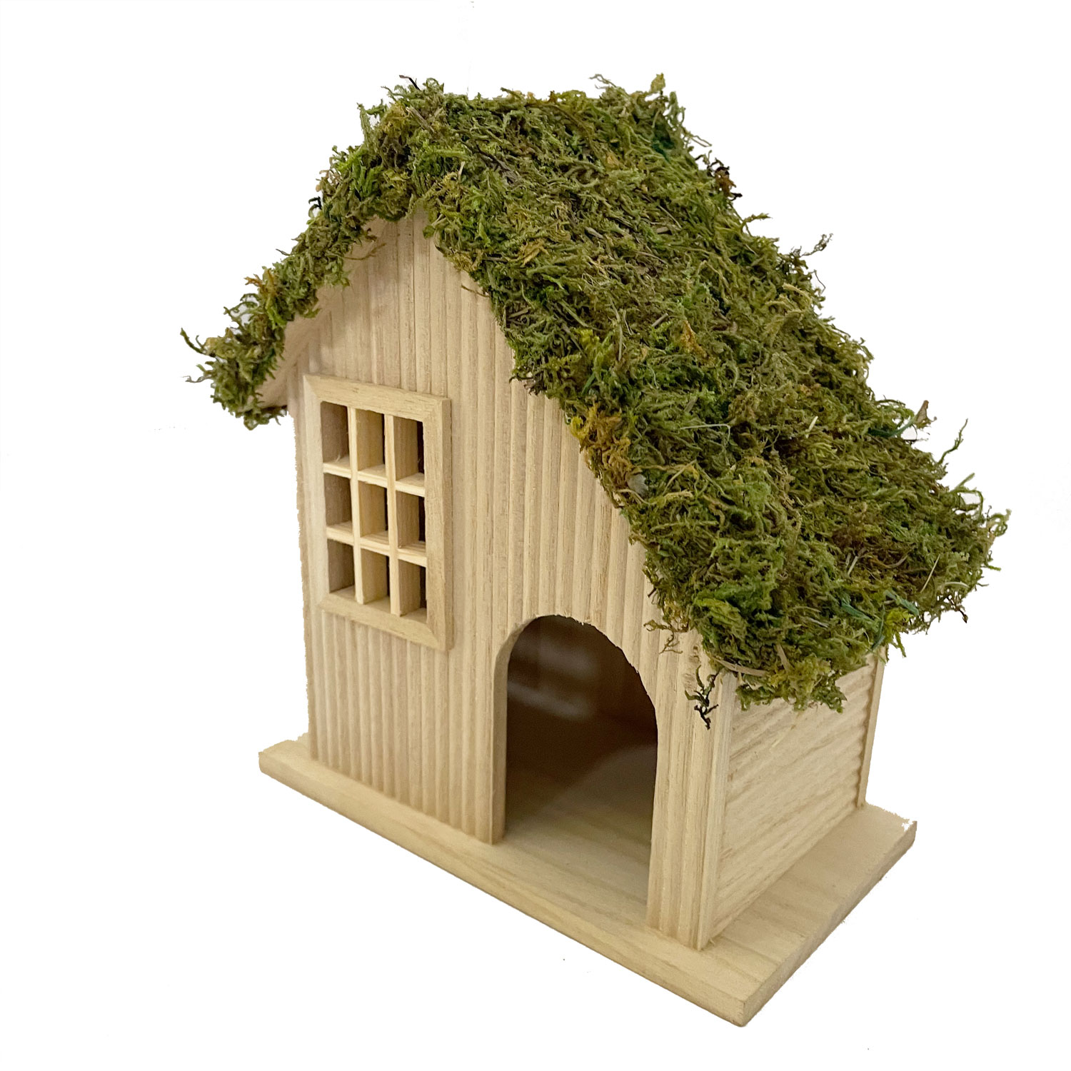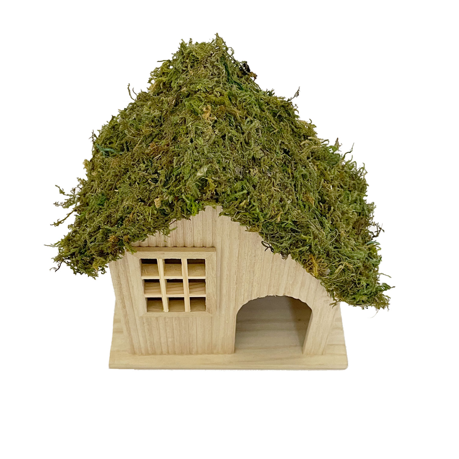 Material: Lightweight Paulownia wood with a moss-covered roof