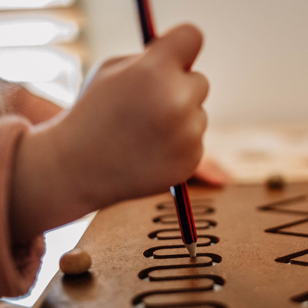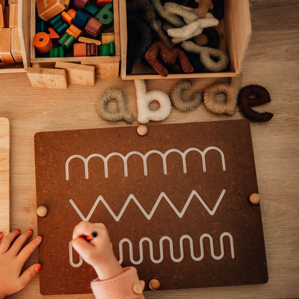 My First Writing Pad is the perfect tool for children to practice their pre-writing skills. Each writing pad comes with one board which encourages straight lines, curves and patterns, this is removable to place paper underneath and secured by 4 wooden nuts.