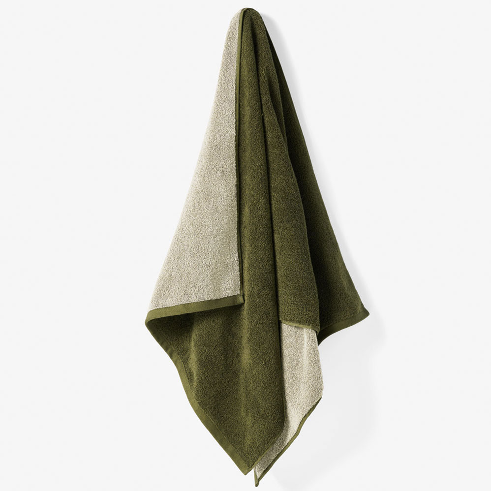 Elevate your everyday with Otway, a lightweight towel that offers two stylish aesthetics in one. Crafted from 550 GSM yarn-dyed cotton terry, Otway features a olive on one side and taupe on the other, perfect for switching up your bathroom look or beach vibe.