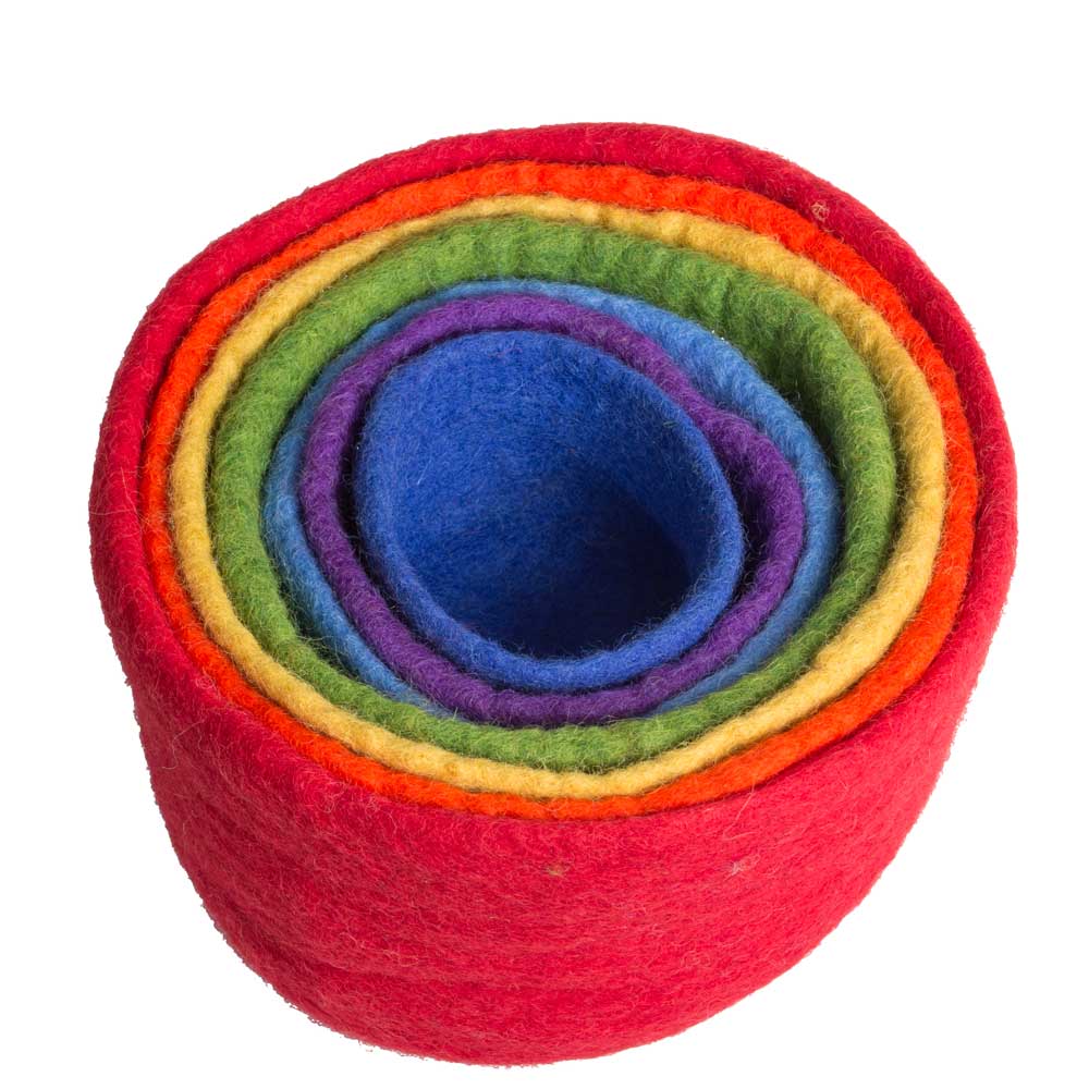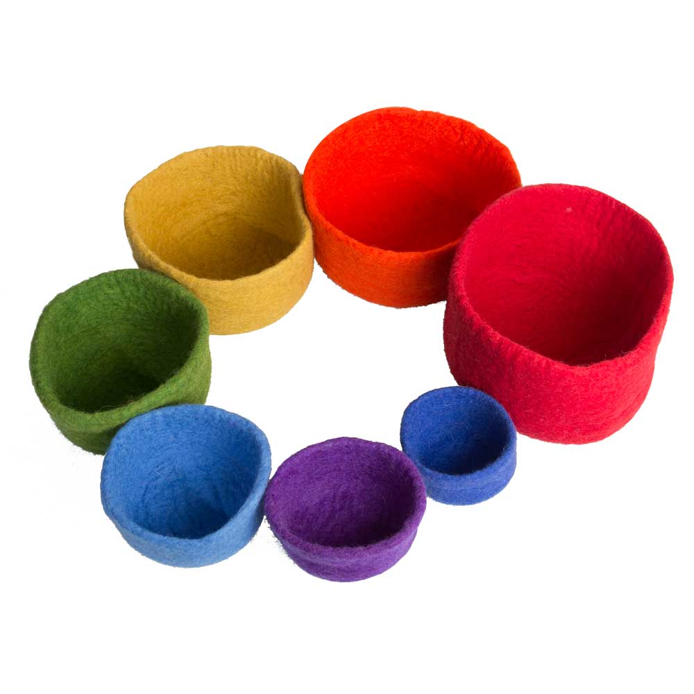 Product Description Rainbow nested bowls, educational and funLargest bowl 20cm Diameter (red)Each piece is made using 100% natural wool products and non-toxic biodegradable dyes Other Details Item: Nesting Bowls Size: 7 piece Set Style: Rainbow