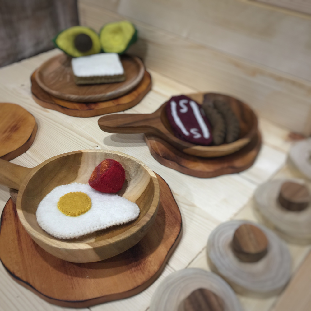 Breakfast Set made from 100% wool, dyed with non-toxic colourfast dyes, all hand-stitched, these original hand felted products are sure to please little kids and big kids alike.