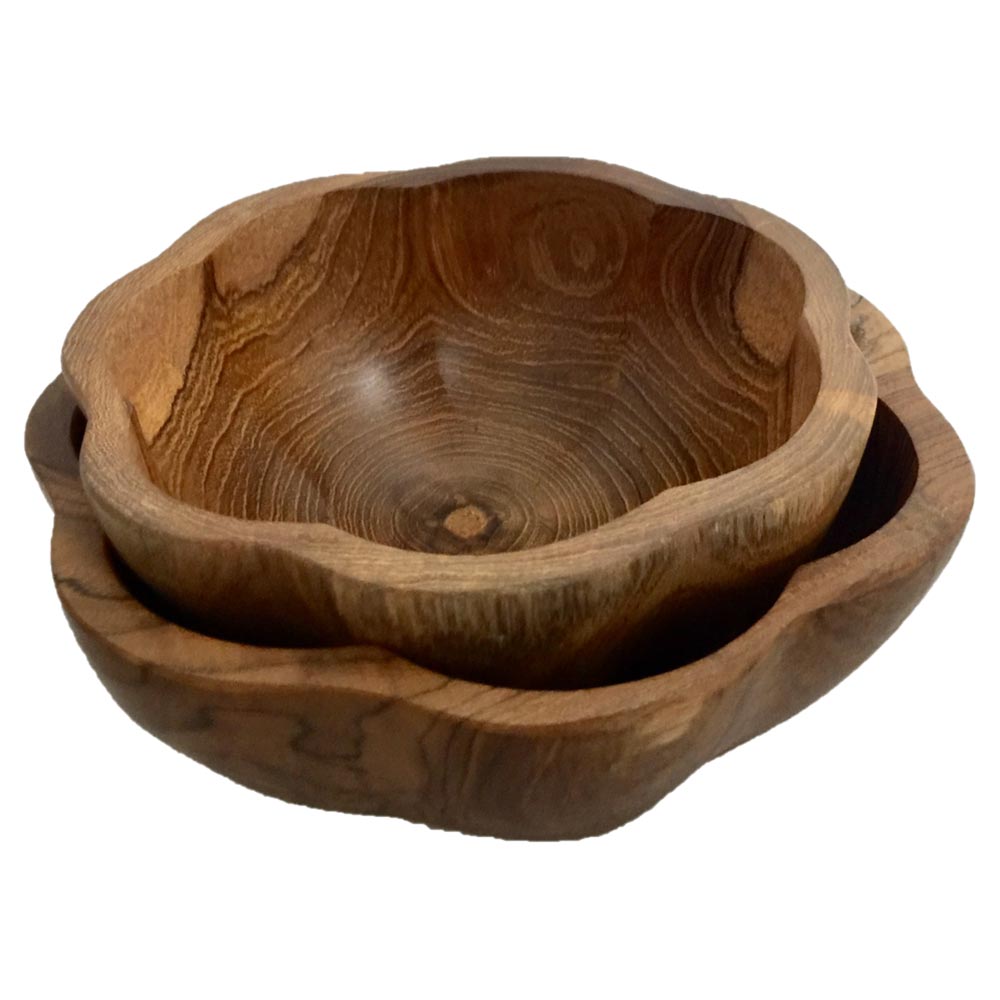 These Wooden Daisy Bowls are handcarved from sustainable teak and are available in 2 sizes.