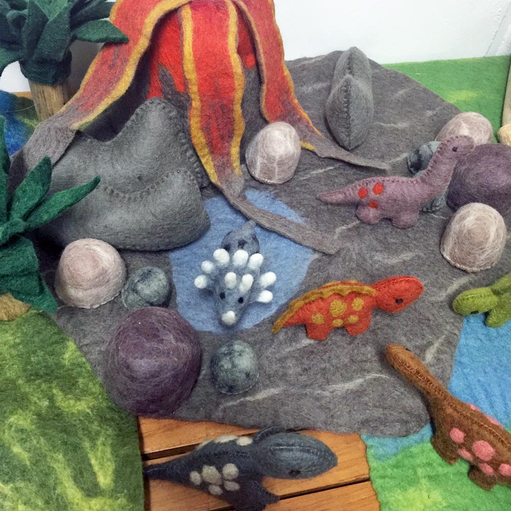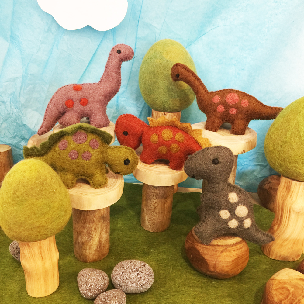 A beautiful collection of 5 small dinosaurs made from 100% natural wool and non-toxic biodegradable dyes. A beautiful addition to your child's Jurassic small world play.