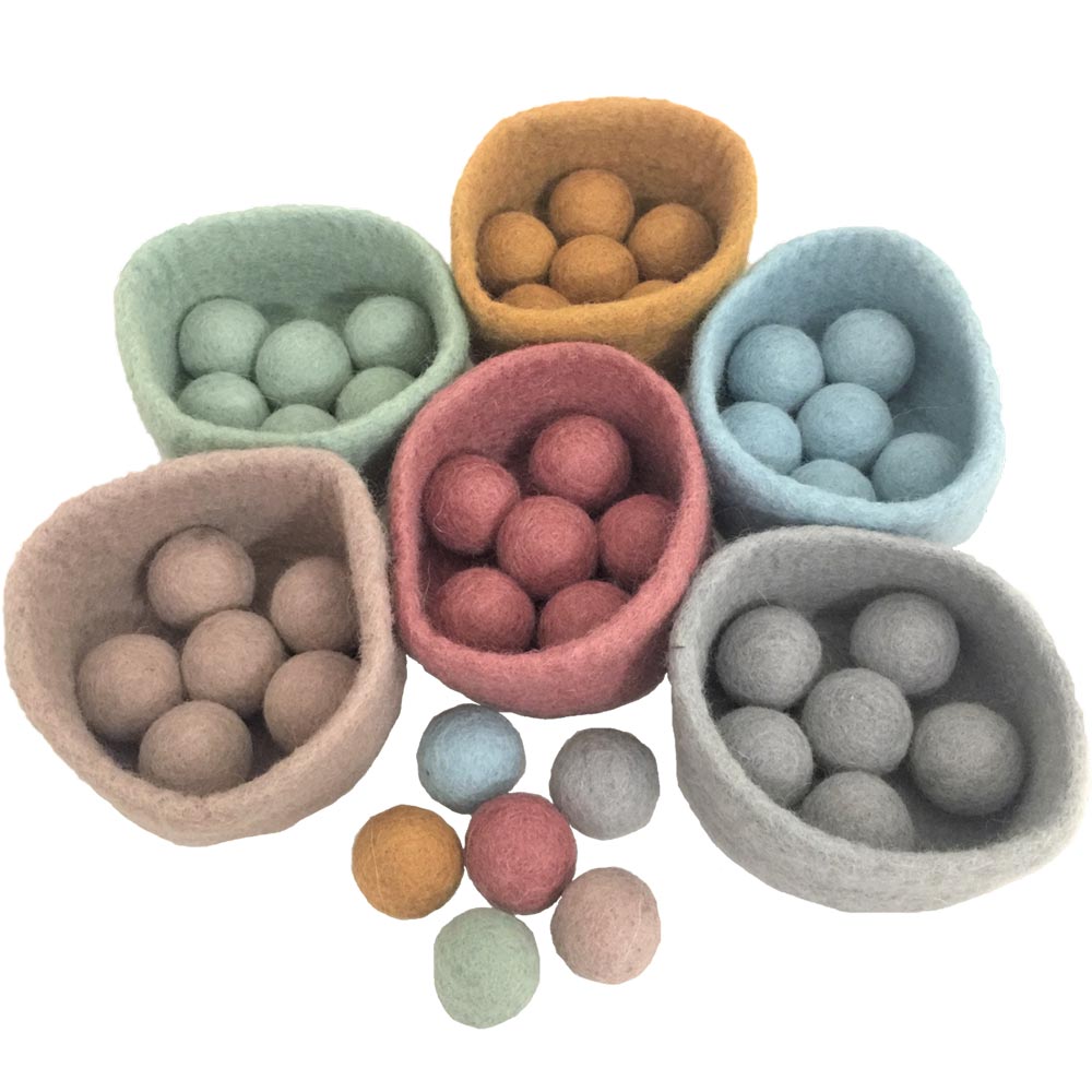 This set has 6 bowls in the colours from the Earth Range filled with 7 balls of the same colour.