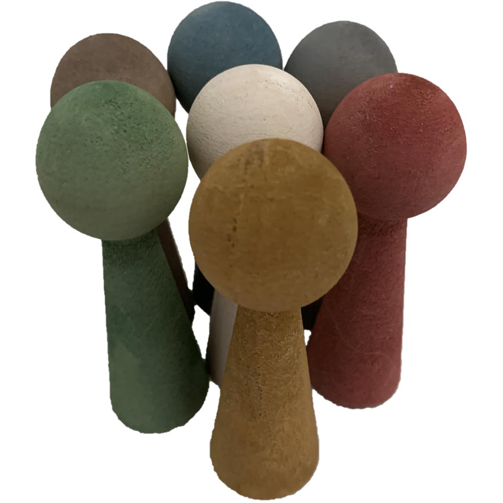 Plain dyed wooden bodies, one each in the 7 Earth colours