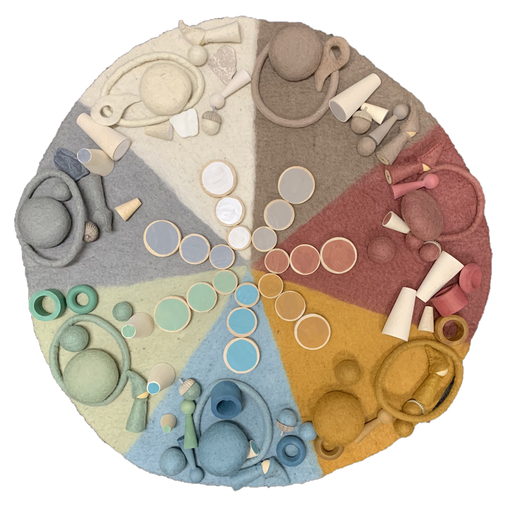 The Earth Rainbow Mat is divided in the 7 Earth colours and any of the Earth range accessories will work well with this mat. It is designed as an open ended play mat, colour matching, setting up stories and game development are a few of its intended uses.