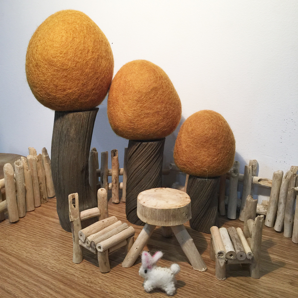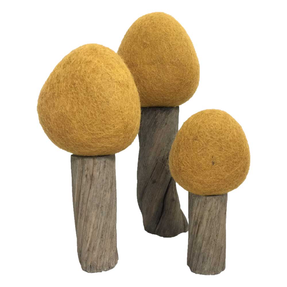 These fantastic Wool Felt & Wood Trees have real natural wood trunks and have been dyed to a grey tone. Each tree trunk is made from real wood ethically sourced from Indonesia and features the natural characteristics of twisted wood, knots, splits and natural markings adding to the unique look of each piece.