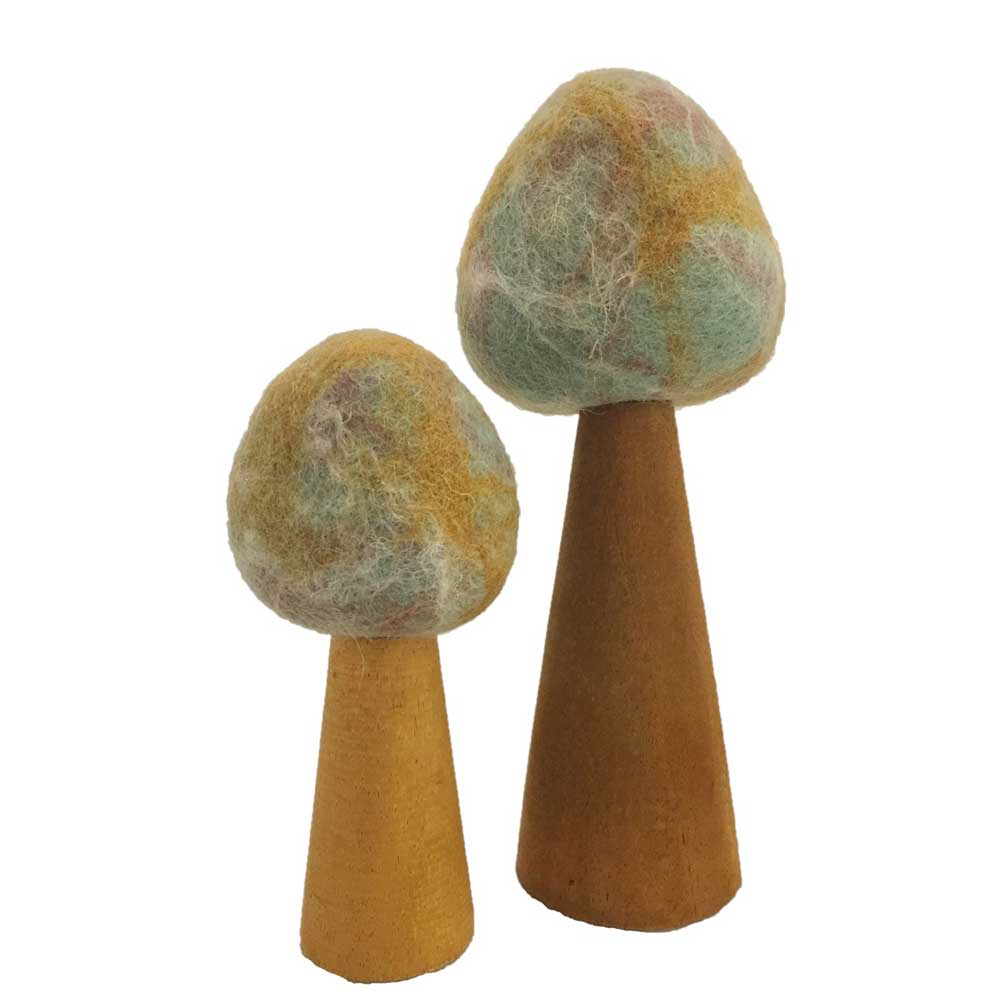 Product Description Earth Tree Set consists of two trees with a gorgeous marbled wool felt top on a beautiful hand dyed conical shaped base. Set of 219cm Height-27cm Height