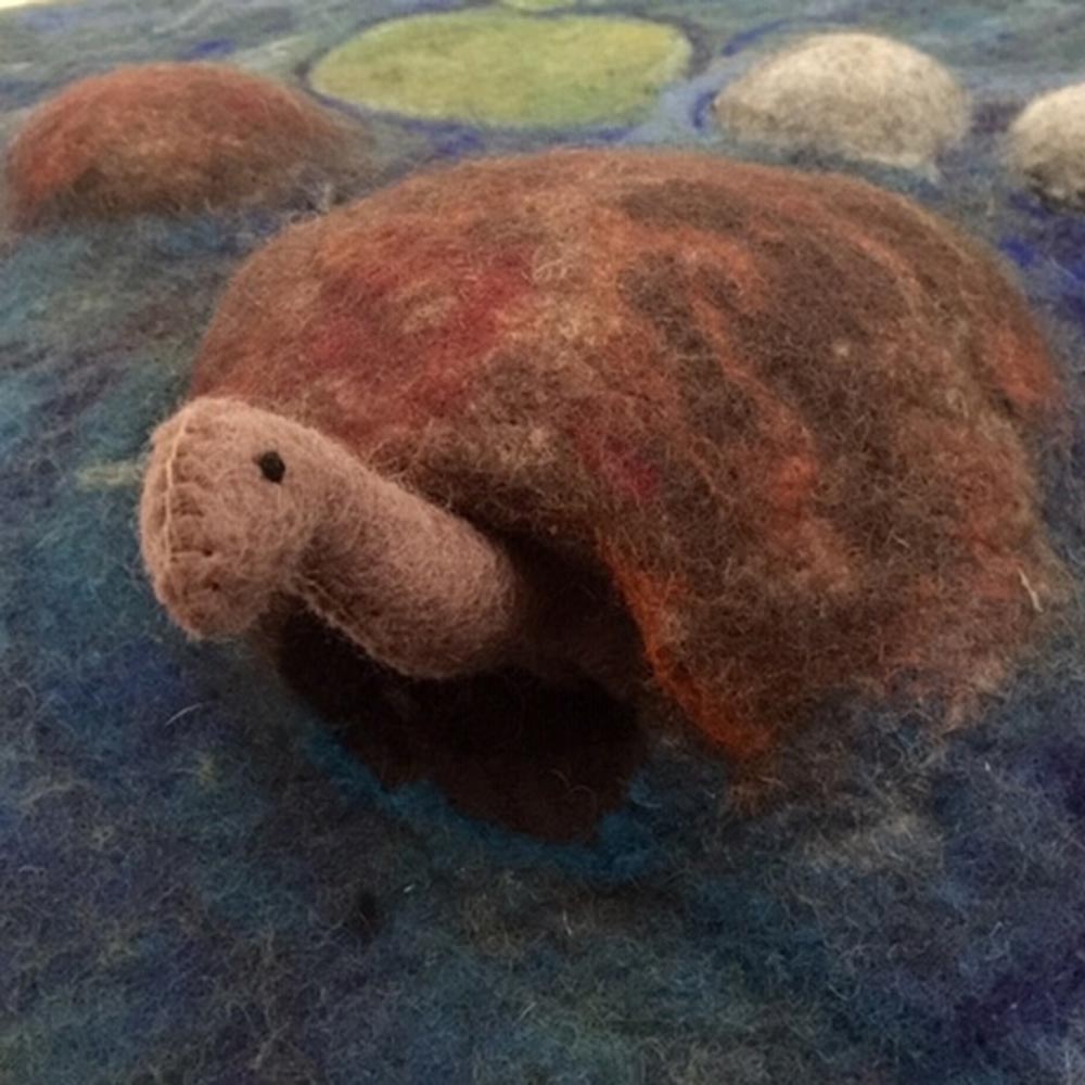 The Estuary Mat has a cave in the water for shelter for fish, mermaids... and 2 caves on land for small critters. The 3D features of this mat make it a delightful small world play experience. The mat is roughly 60x90cm. As these are all hand felted small variations in design and size occur and are a feature of hand made products.