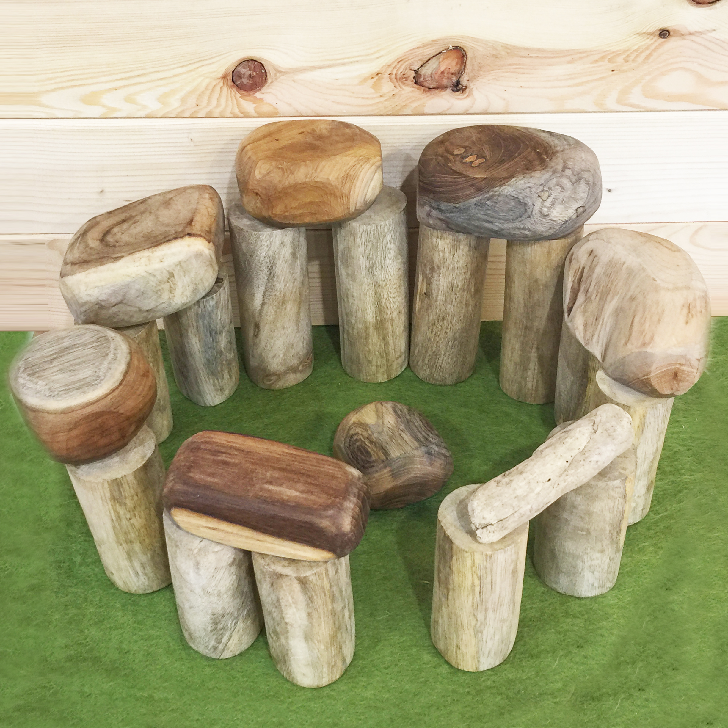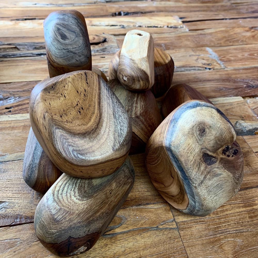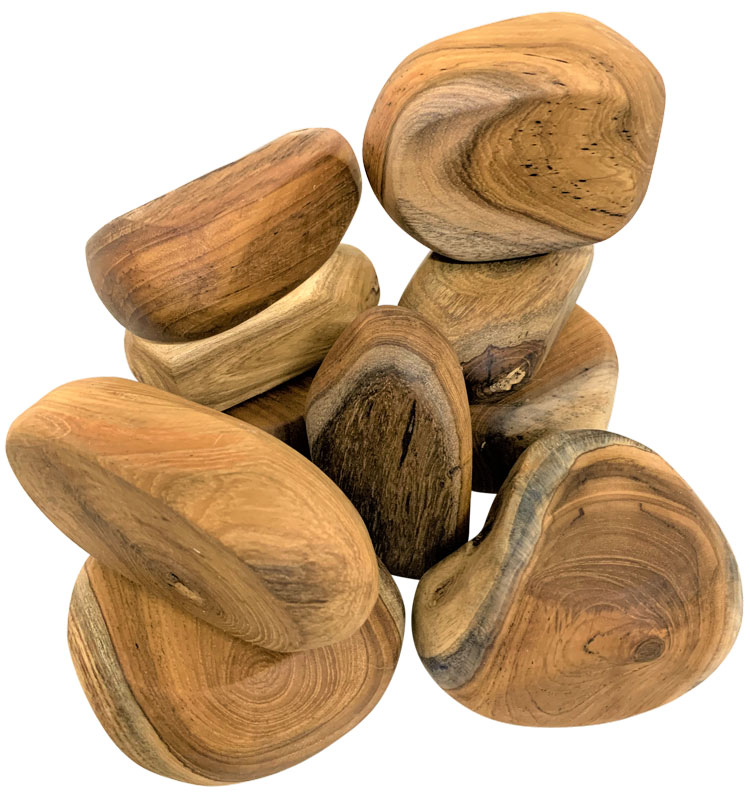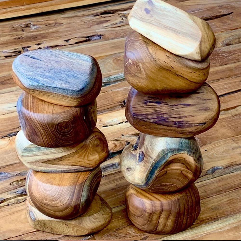 These open-ended chunky Flintstone stacking rocks are made utilising waste material from the furniture industry! Using a natural finish to bring out the colour and grain in the wood. Each piece is different and can be stacked. The wood colour, wood grain and sizes vary making each piece unique.