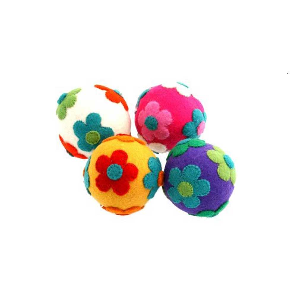 Flower Felt Balls 7cm 4 Piece Set | 7cm | Papoose Toys