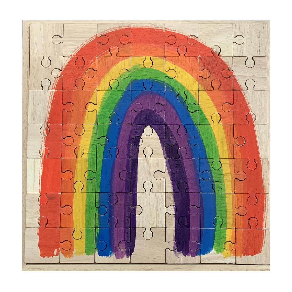 Hand Painted Bright Rainbow Arch wooden Jigsaw Puzzle - 49 piece | Papoose Toys