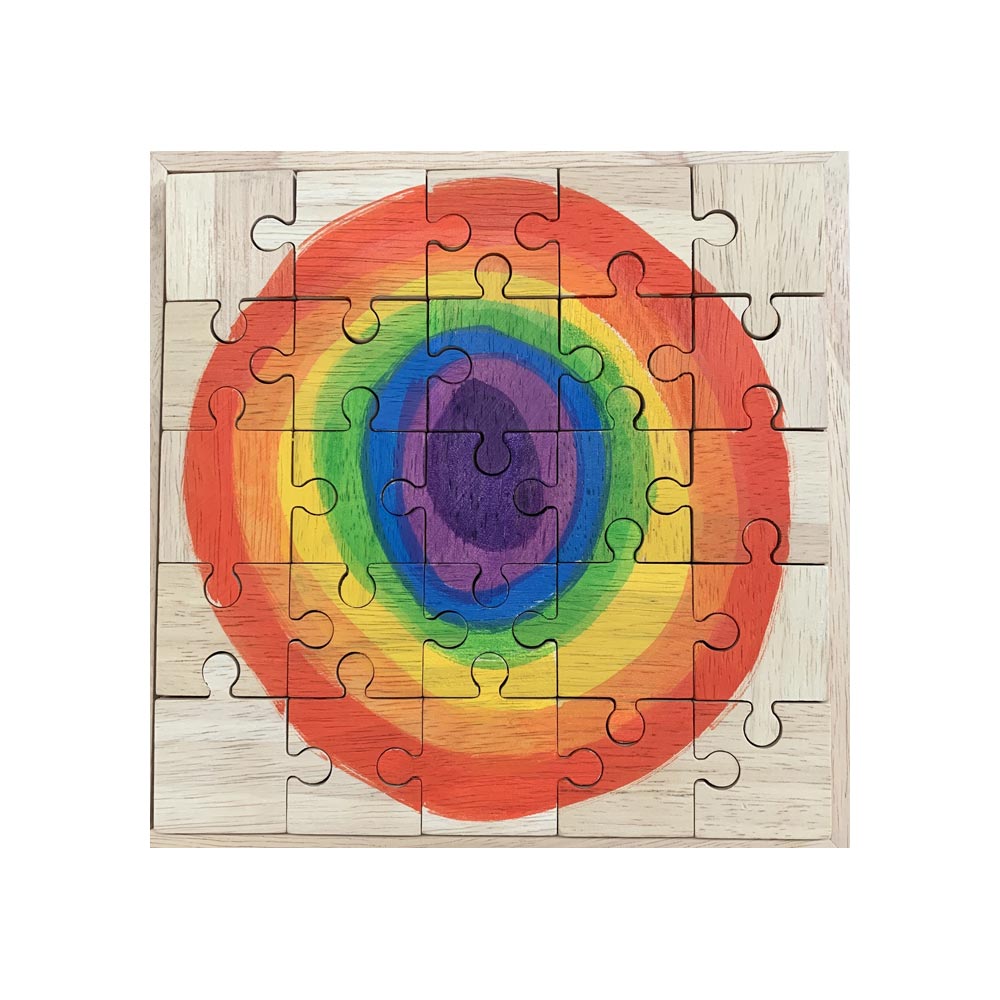 Hand Painted Bright Rainbow Moon wooden Jigsaw Puzzle - 25 piece | Papoose Toys