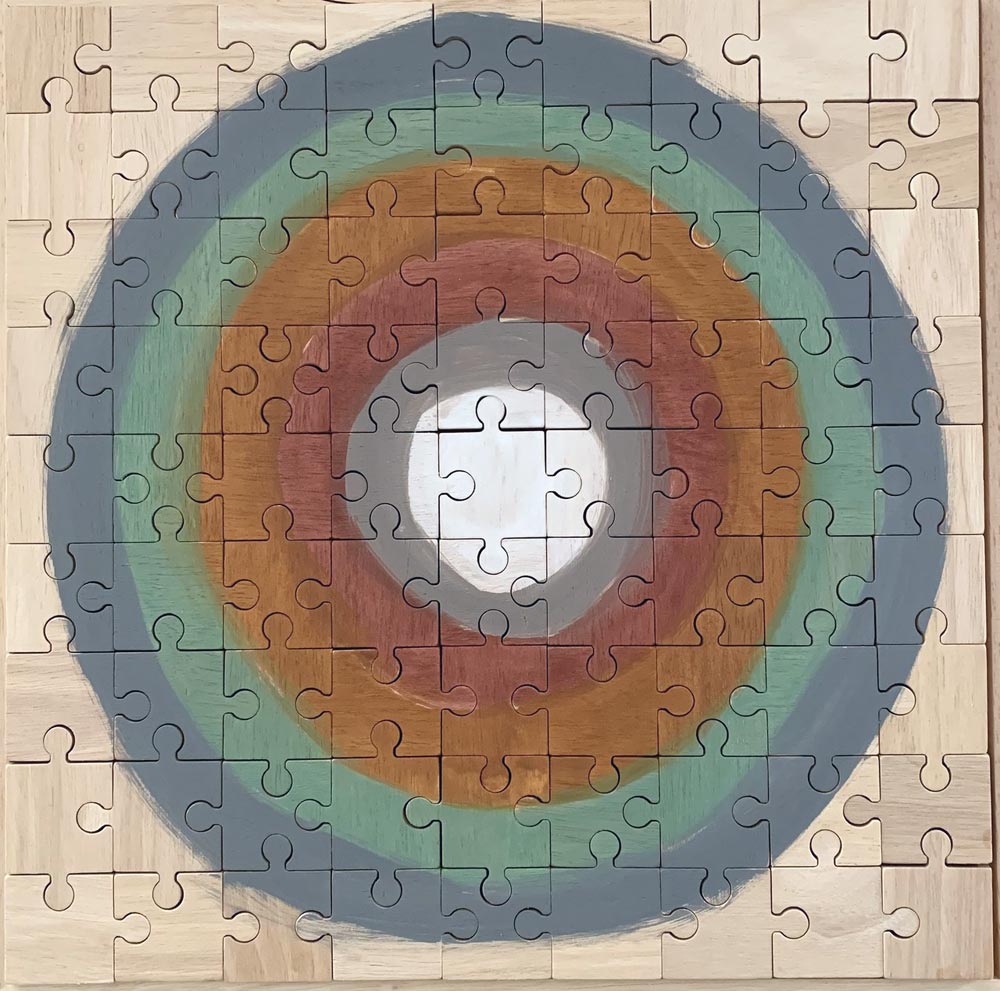 This wonderful 81 piece chunky wooden jigsaw puzzle featuring an Earth coloured rainbow moon has been hand painted by designer Renske Carbone in her Melbourne studio using high quality german dyes. The front of each puzzle has been hand painted and the reverse left blank for a more challenging experience. Each puzzle sits neatly in the included wooden tray ideal for storage or moving your uncompleted jigsaw puzzle to a new location for when you are ready to continue playing .