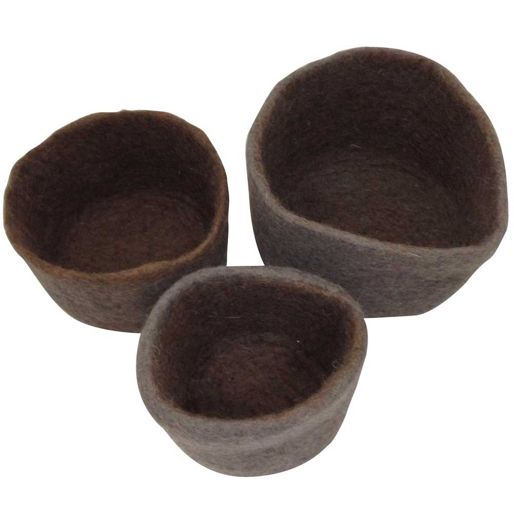 Sale Add to Cart Nested Felt Bowls 3 Piece Set | Natural | Papoose Toys Now: $AUD35.00 MSRP: Was: $AUD39.95 Set of 3 nesting bowls, 15cm diameterEach piece is made using 100% natural wool products and non-tox…