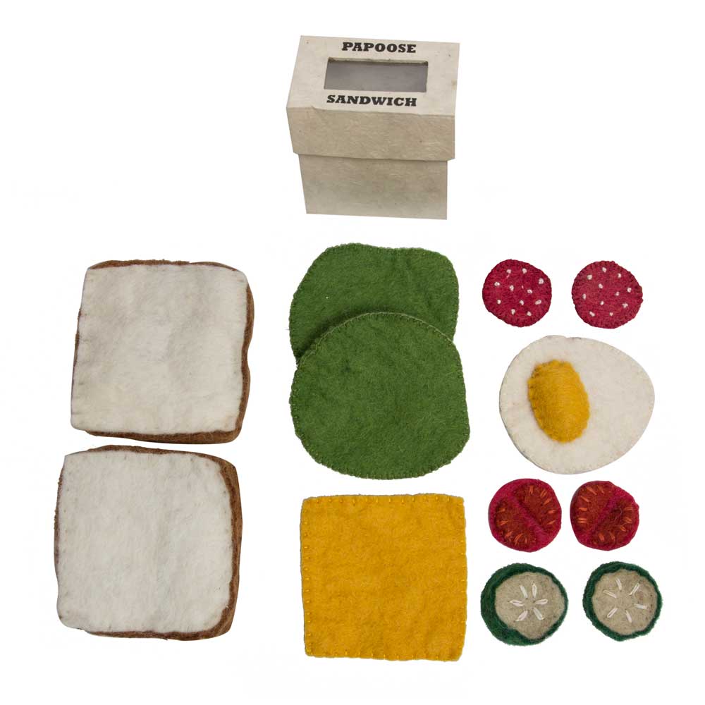 Wool felt Sandwich set - 12 Pieces gift boxed - Made from 100% wool, dyed with non-toxic colourfast dyes, all hand-stitched, these original hand felted products are sure to please little kids and big kids alike.