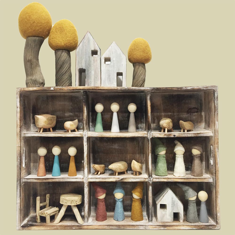 Made by hand this natural wooden large tray measuring 60x10x35cm with 9 divisions can be used for sorting, organising and storing loose parts. Looks fantastic as a storage shelf for small world play components.